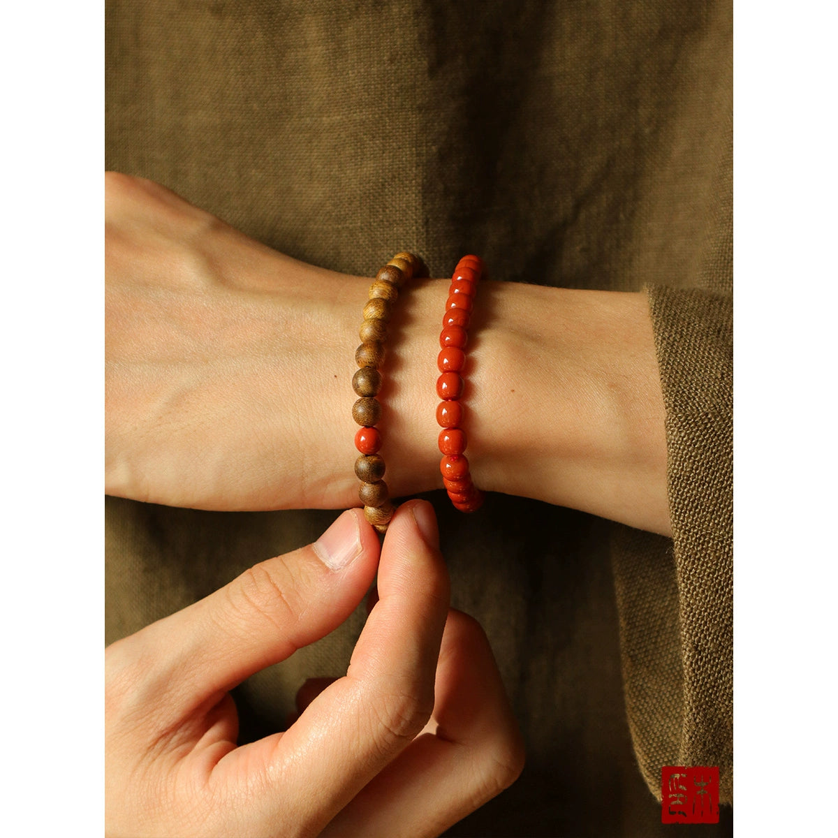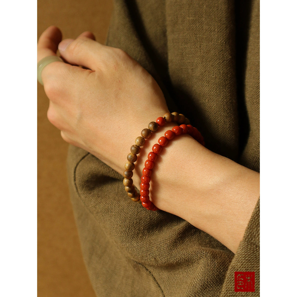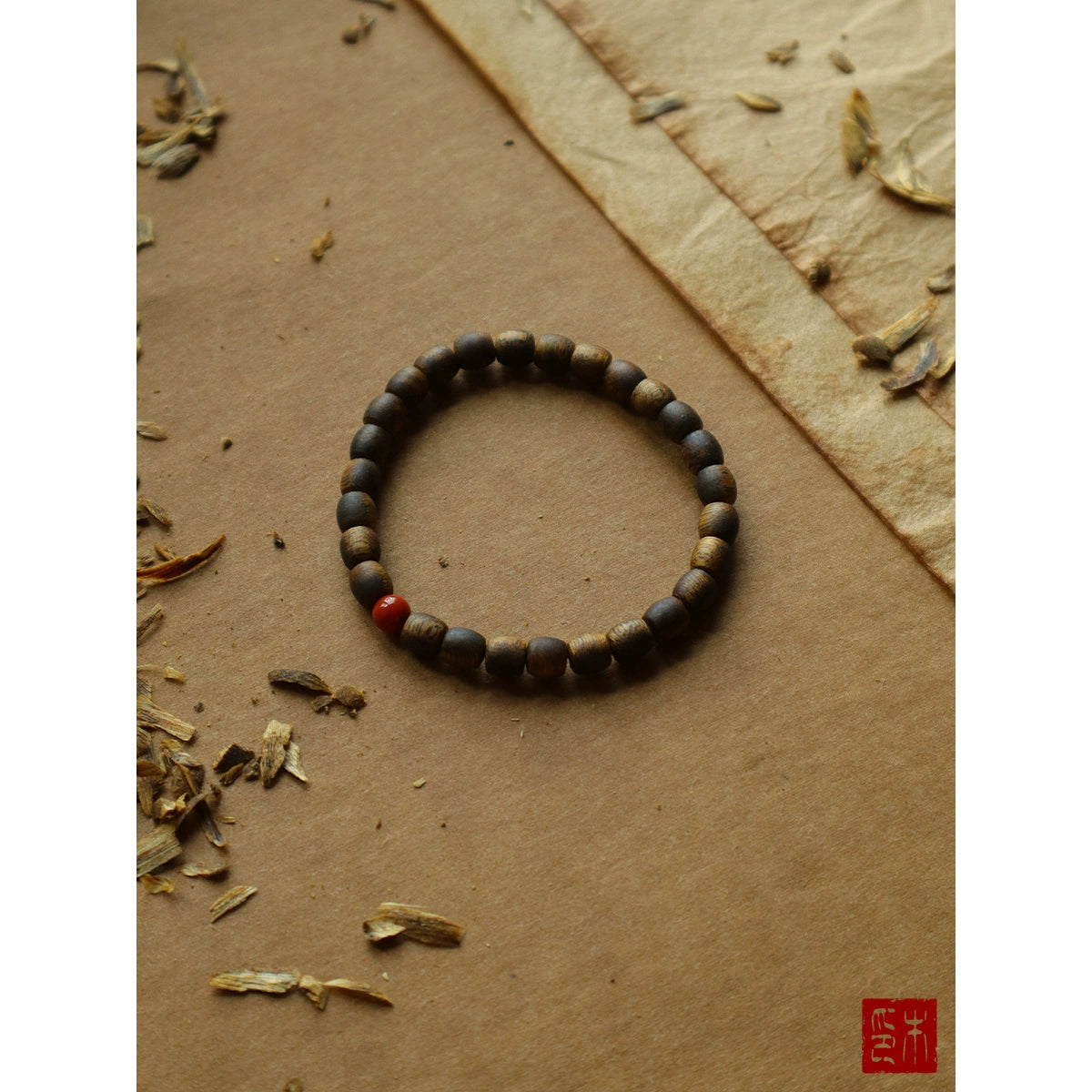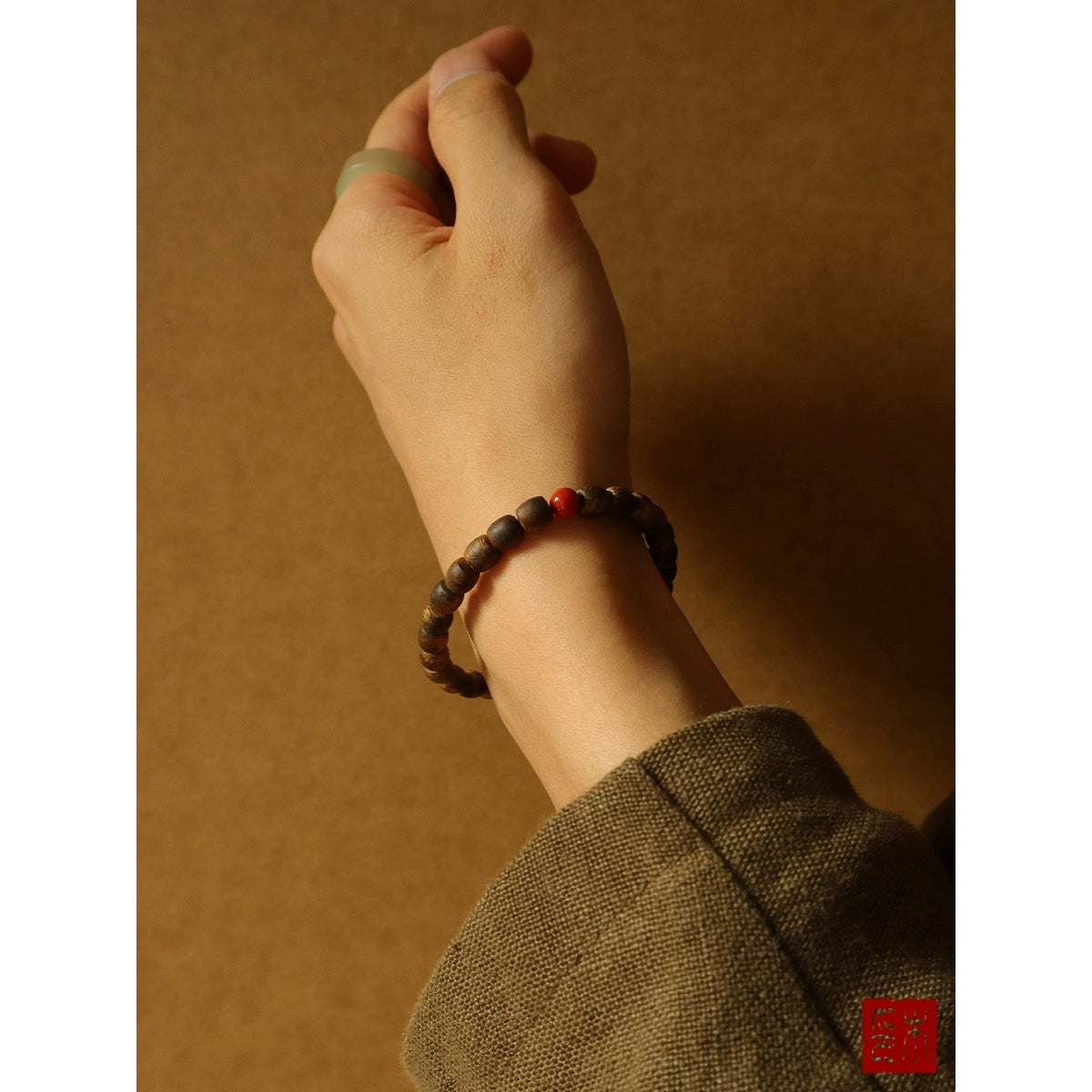 • "Like a Ripple" Chinan Agarwood Barrel Bead Bracelet Natural Old Material Unoptimized Round Bead Bracelet Gift