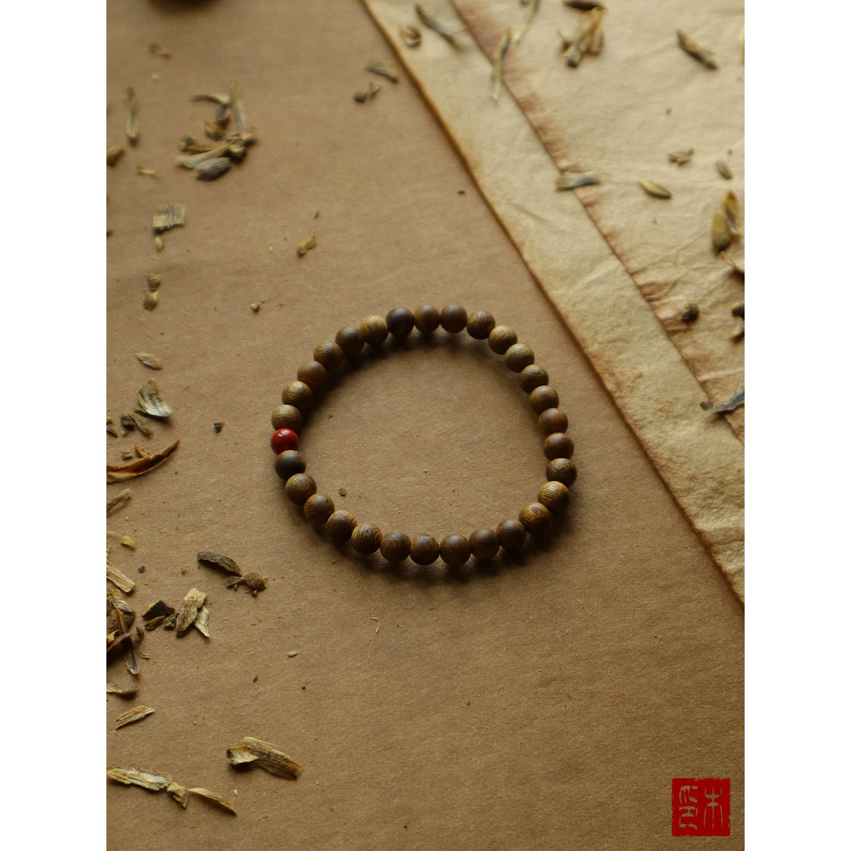 "Like a Ripple" Chinan Agarwood Barrel Bead Bracelet Natural Old Material Unoptimized Round Bead Bracelet Gift
