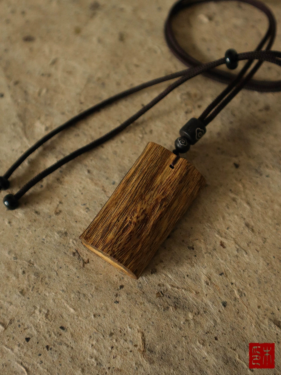 • "Lingguang Fall" Chinan agarwood no matter brand pendant necklace natural old material wooden handle piece Wenwan