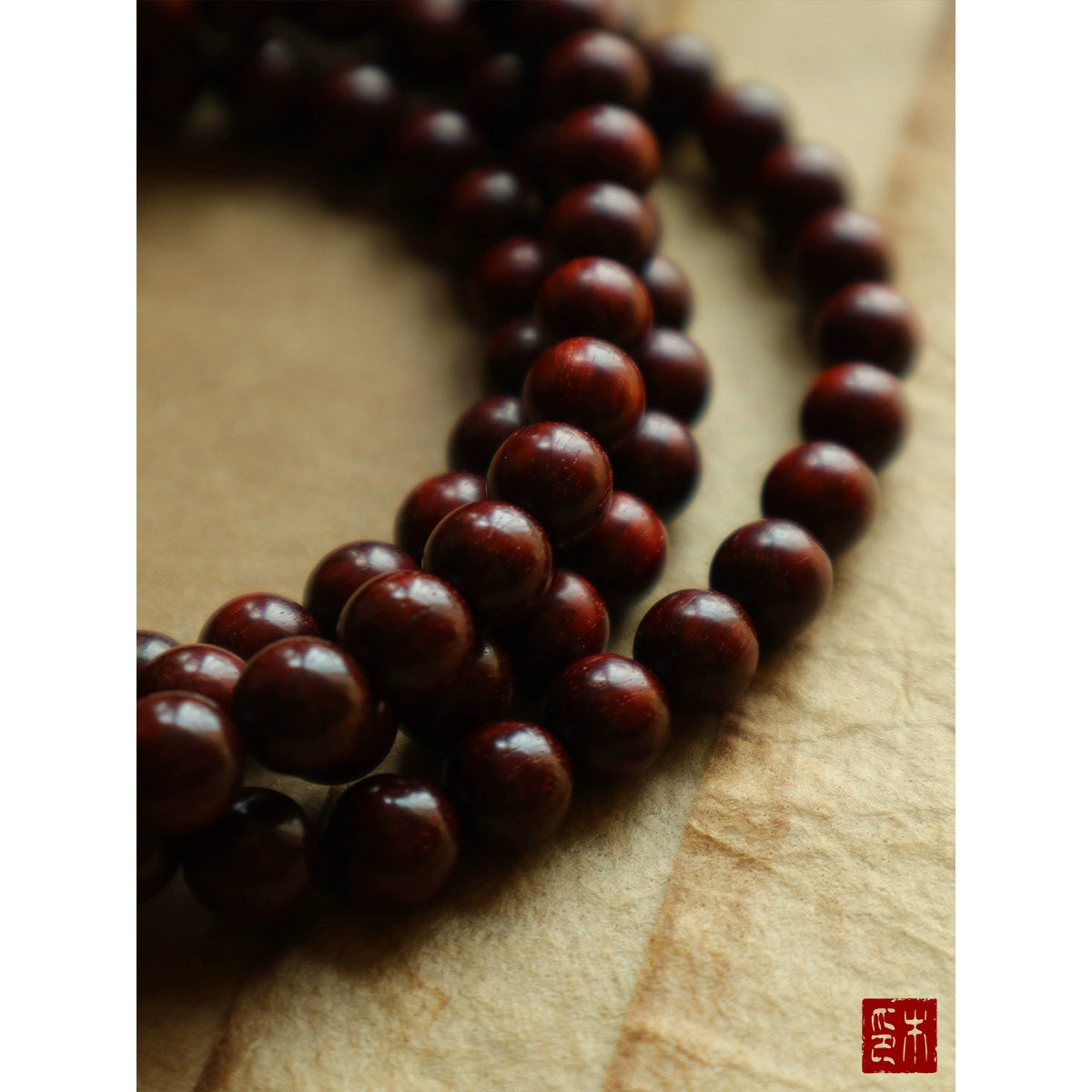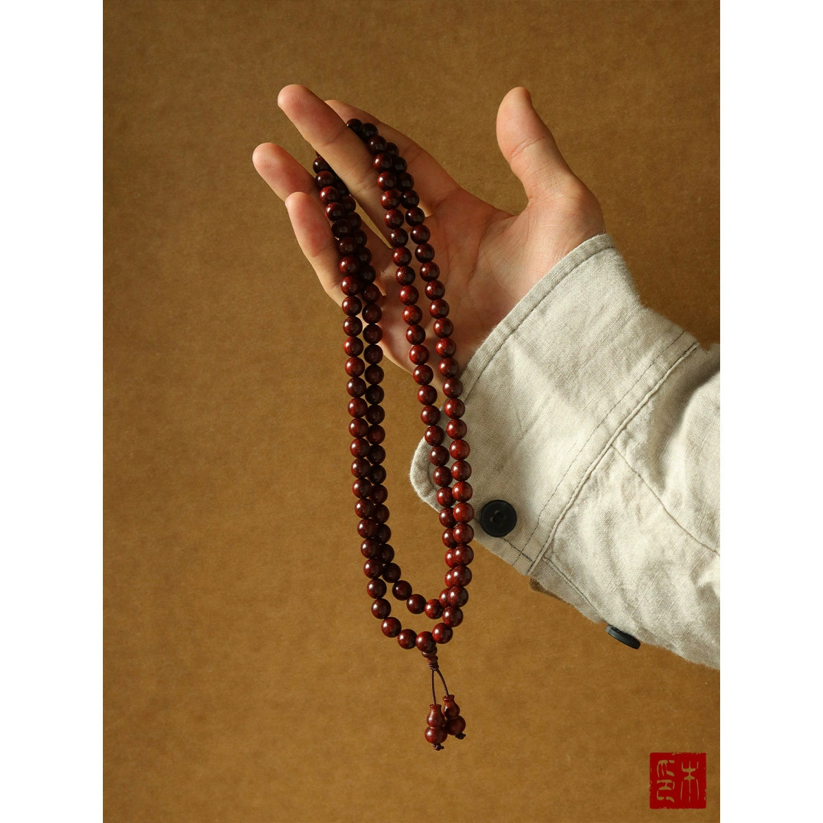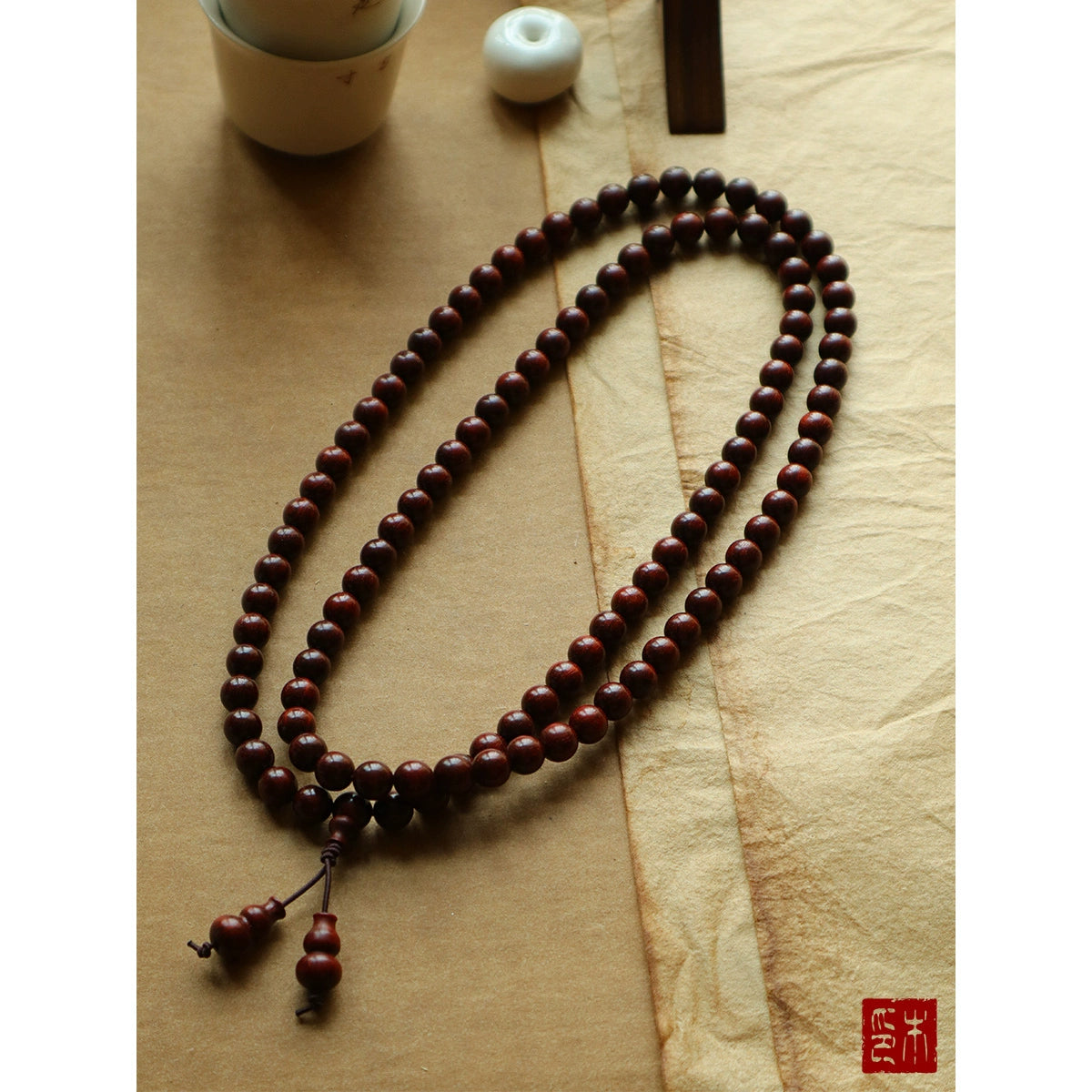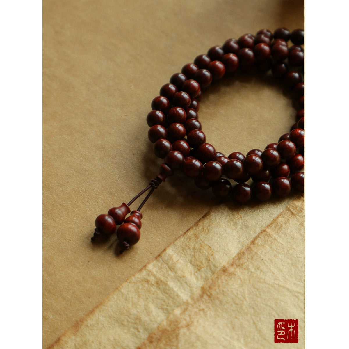 • "Nine Purples from Fire" Original Ecological No Glue Film Leaflet Red Sandalwood 108 Bracelet Buddha Beads Handheld Rosary Beads 8mm
