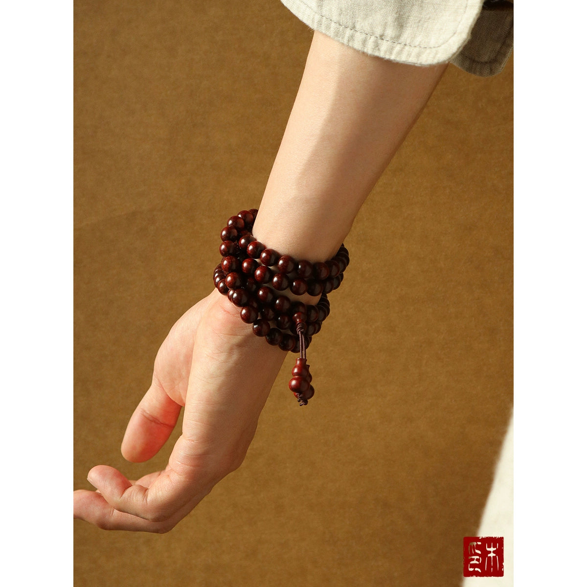 "Nine Purples from Fire" Original Ecological No Glue Film Leaflet Red Sandalwood 108 Bracelet Buddha Beads Handheld Rosary Beads 8mm