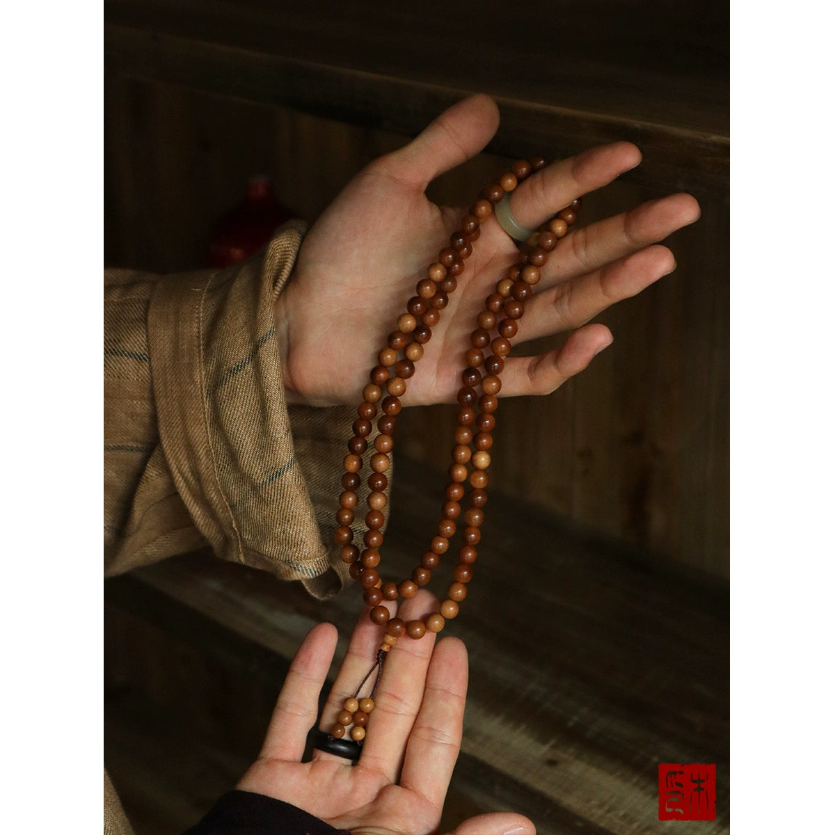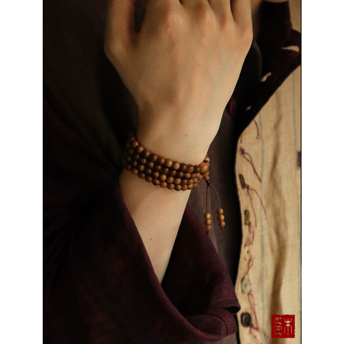 "A wisp" of natural Laoshan sandalwood black meat horizontal lines 108 bracelets, Buddha beads, hand-held rosary beads, gifts for men and women