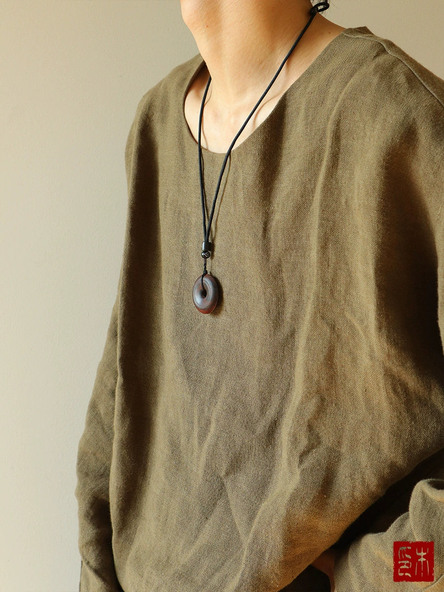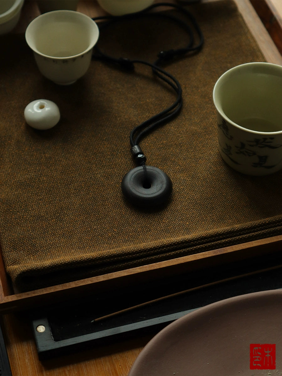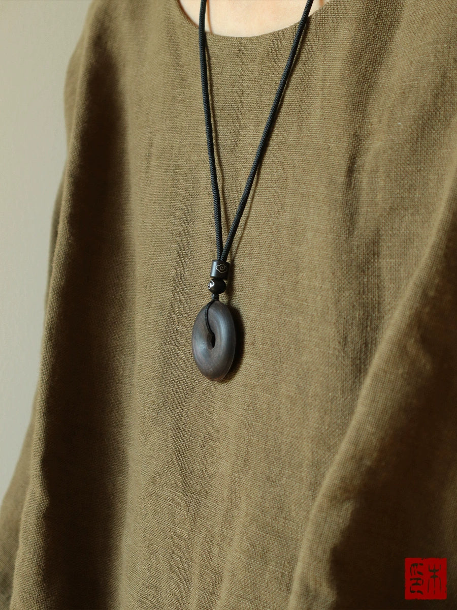 • "Chang Zai" Natural Solid Wood Safety Buckle Pendant Chinese Zen Pendant Men's and Women's Necklace Silver Gift
