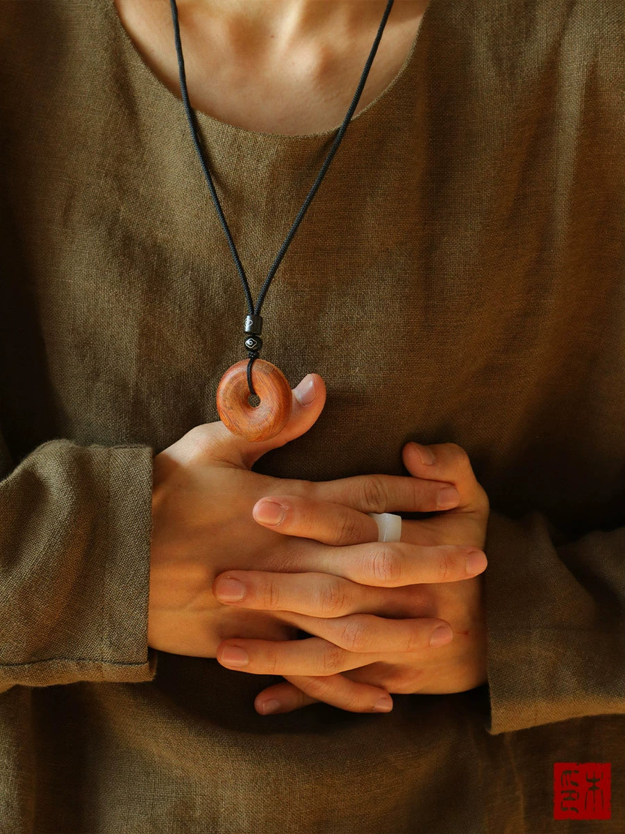 "Chang Zai" Natural Solid Wood Safety Buckle Pendant Chinese Zen Pendant Men's and Women's Necklace Silver Gift