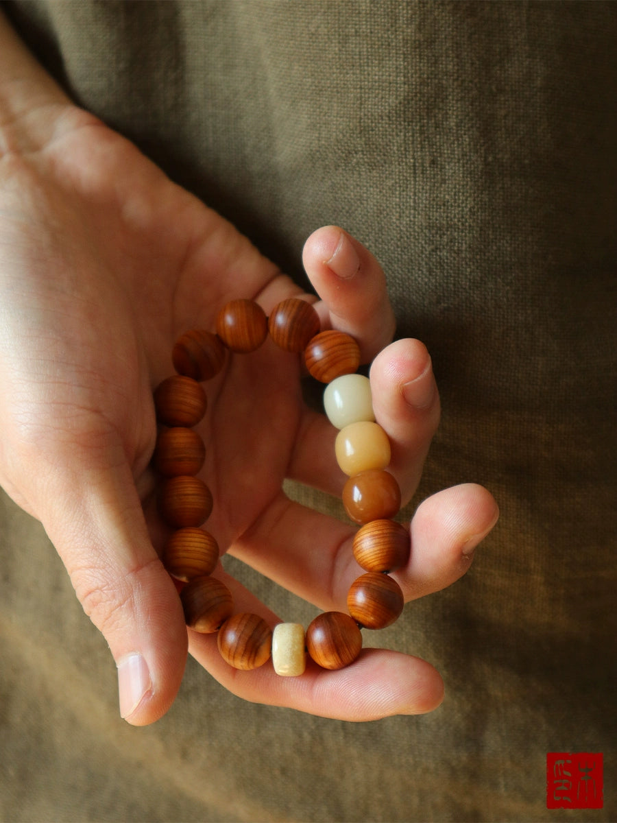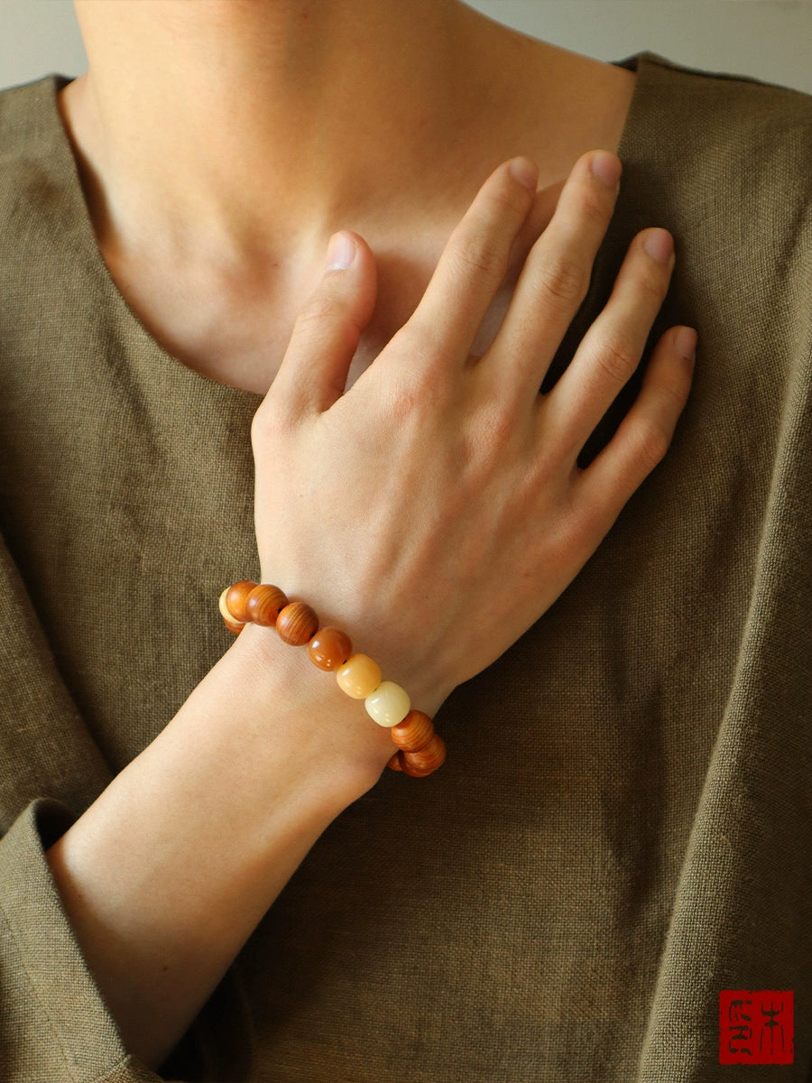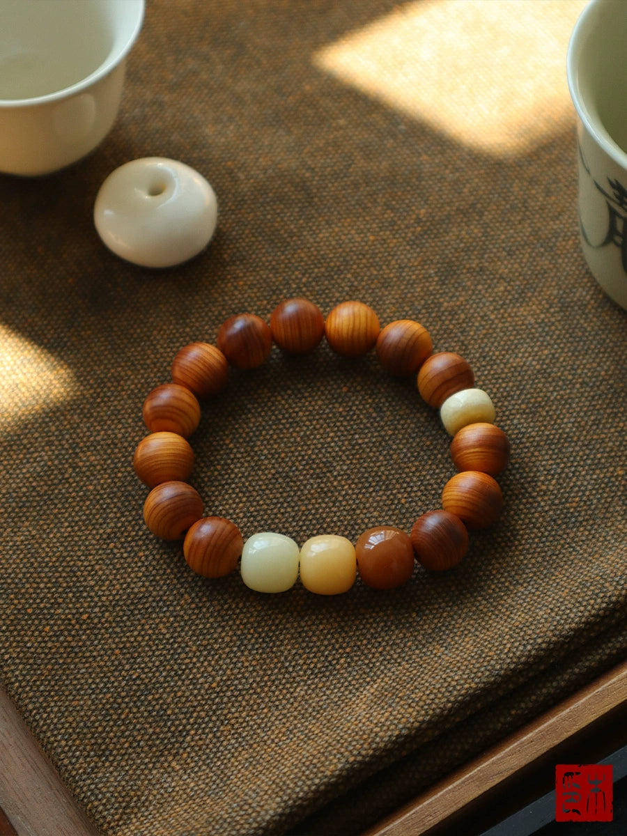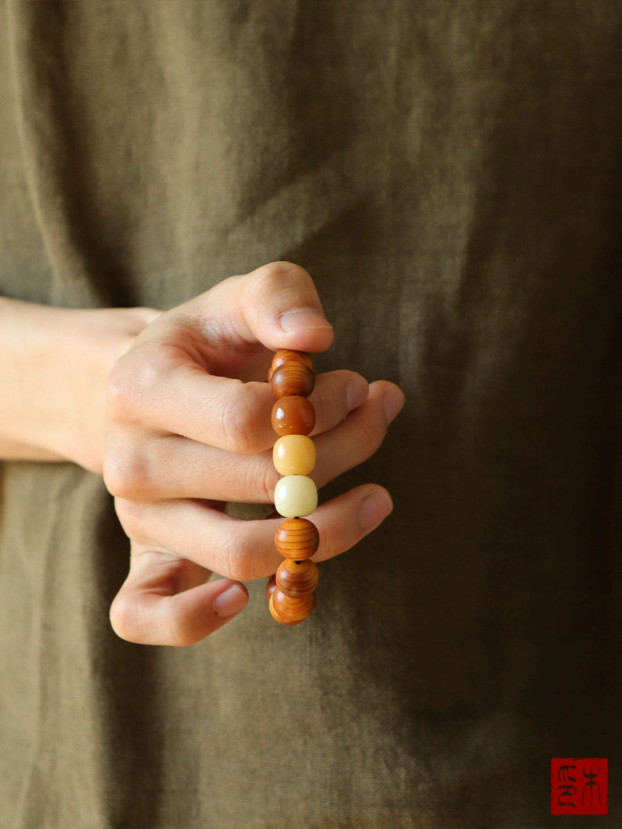 "Chaohua" Aged Yabai Bracelet, Three-color Bodhi septum camel bone Wenwan hand reciting Buddha beads