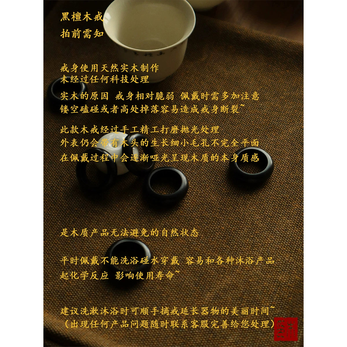 • "Evening Ruoyou Mountain" solid wood ebony ring handmade antique niche simple couple ring gift