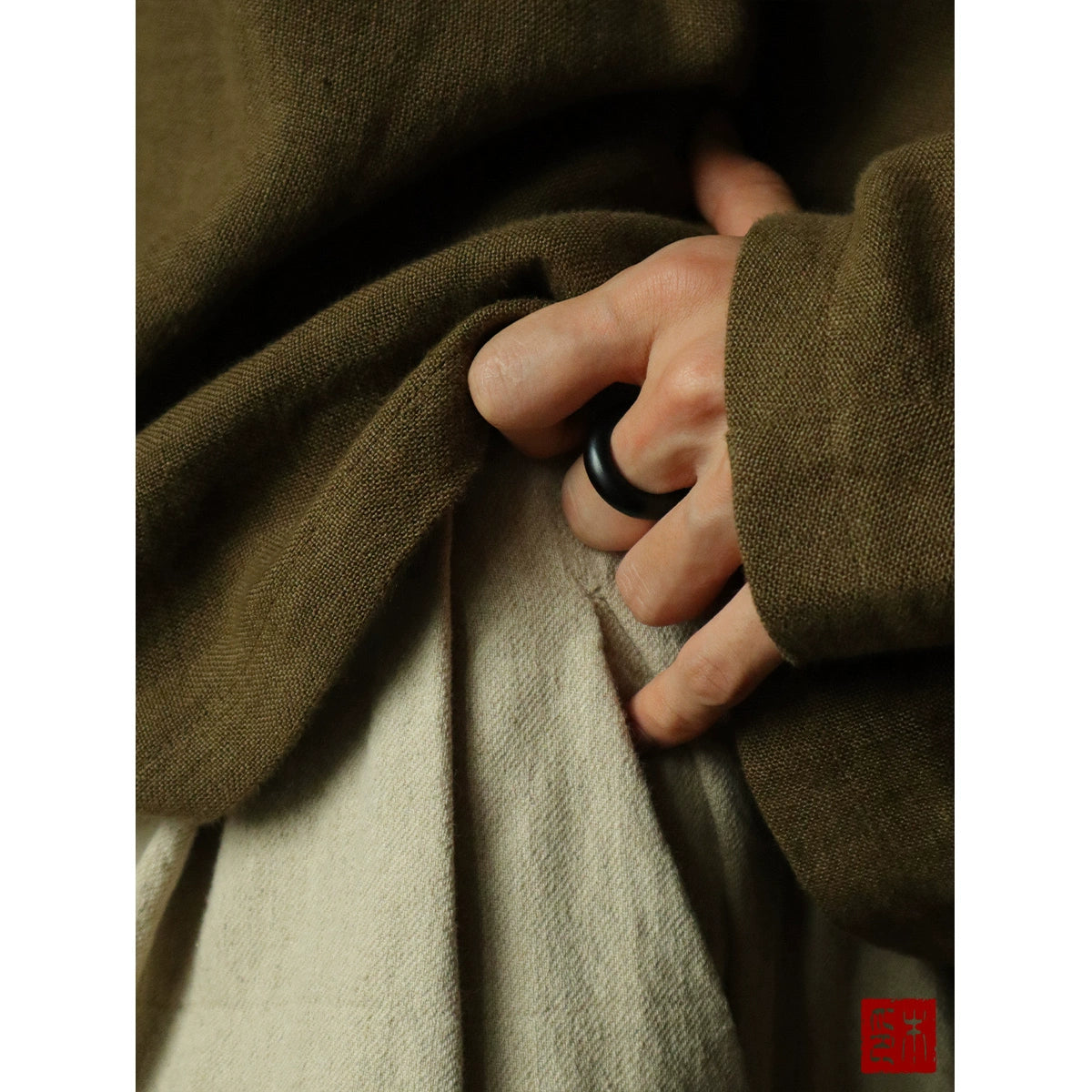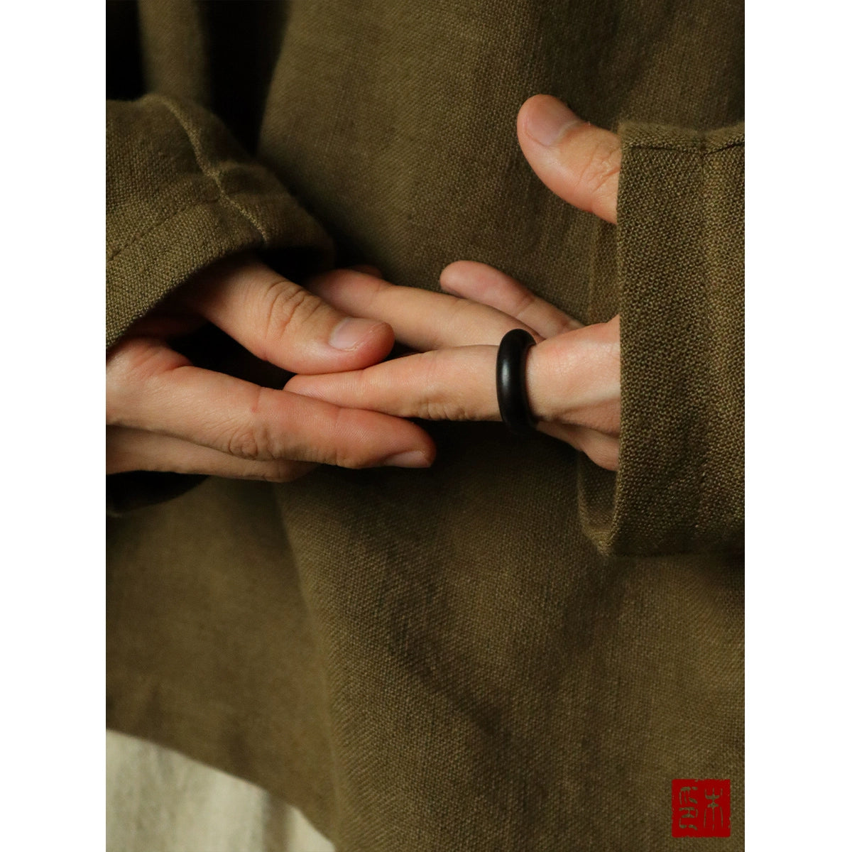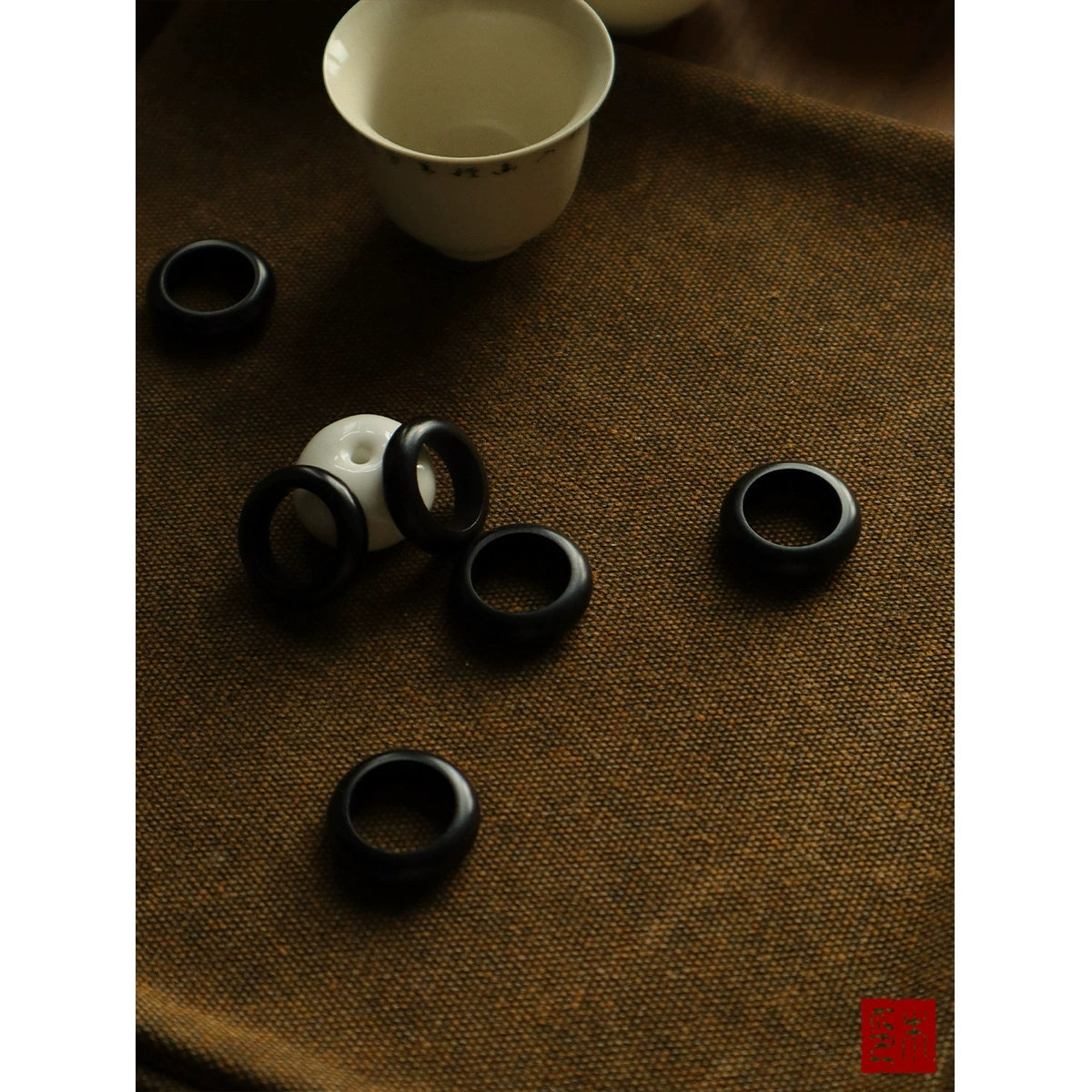 "Evening Ruoyou Mountain" solid wood ebony ring handmade antique niche simple couple ring gift