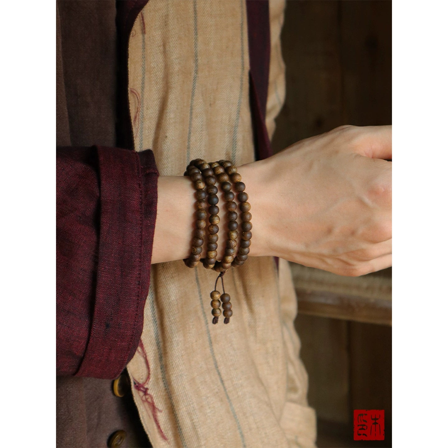 "Linzhi" Chinan agarwood round beads 108 99 points submerged water bracelet handheld rosary Wenwan jewelry