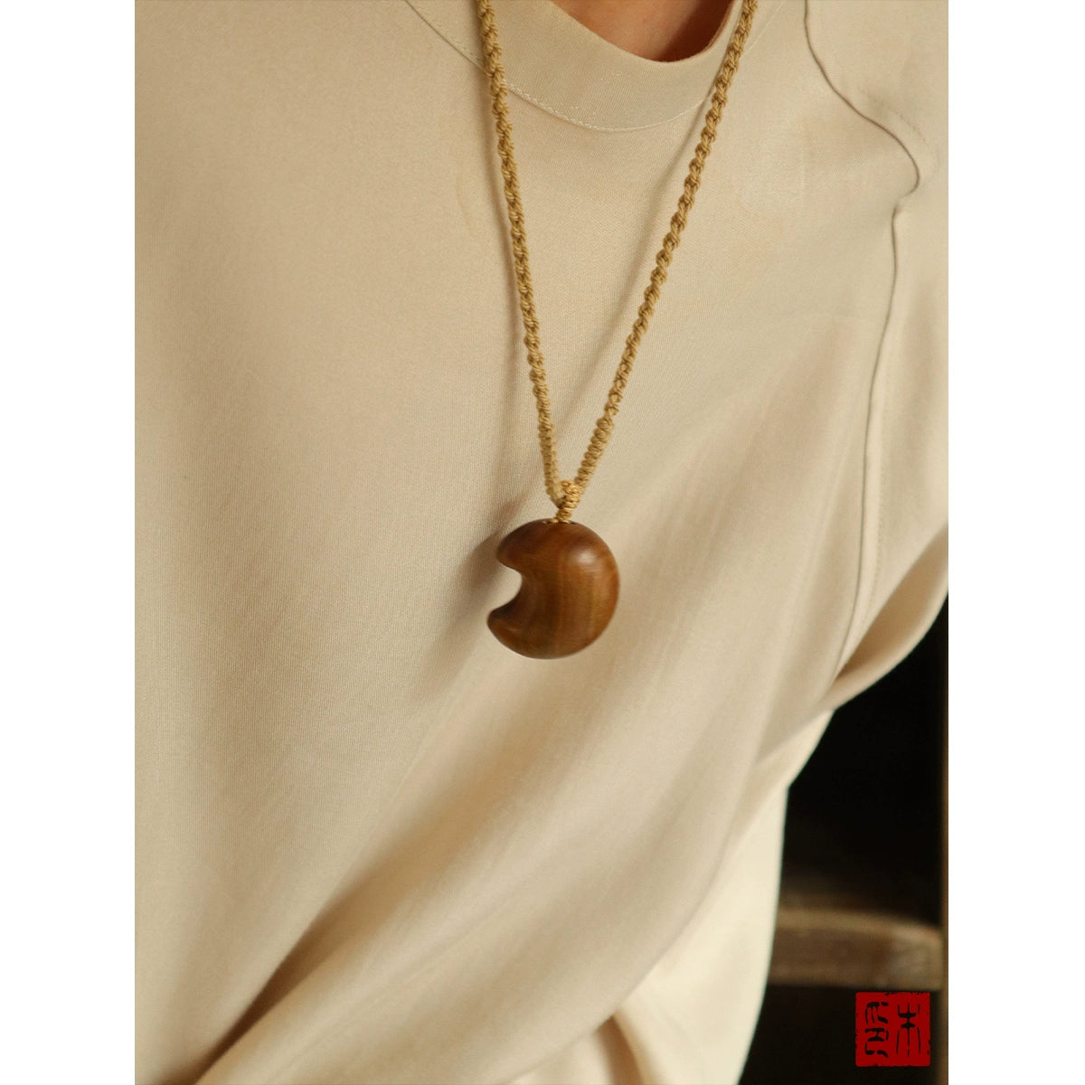 "Looking Forward to the Stars" Original Natural Green Sandalwood Star Moon Pendant Male and Female Couples Necklace Gift