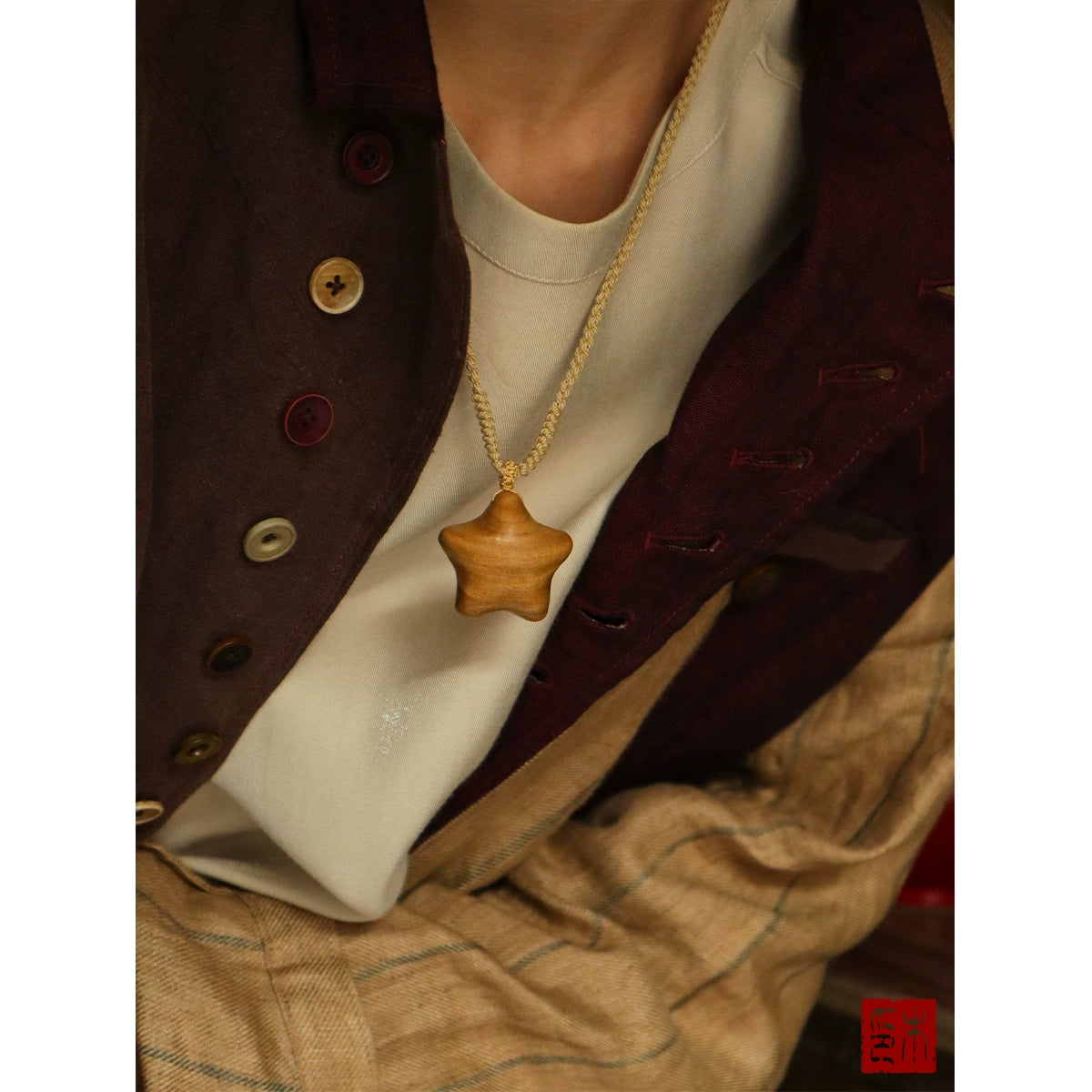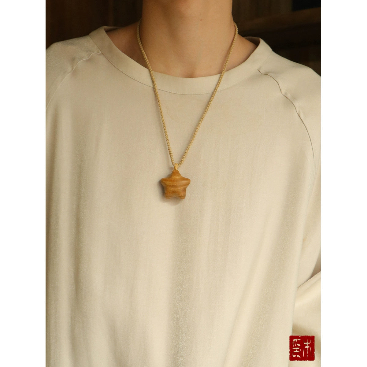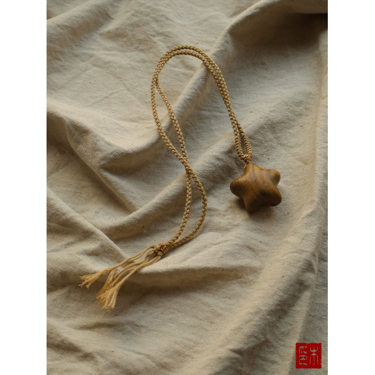 • "Looking Forward to the Stars" Original Natural Green Sandalwood Star Moon Pendant Male and Female Couples Necklace Gift