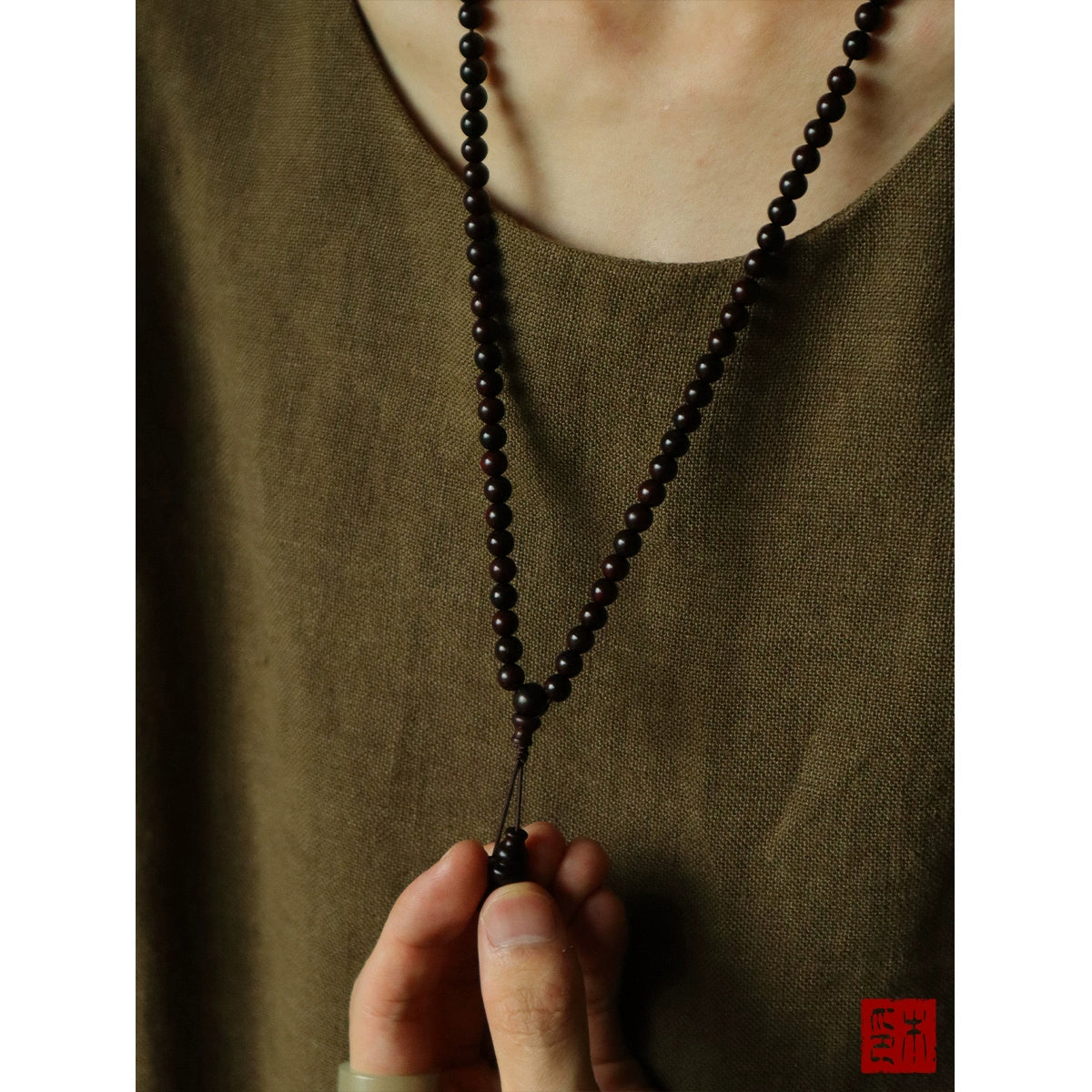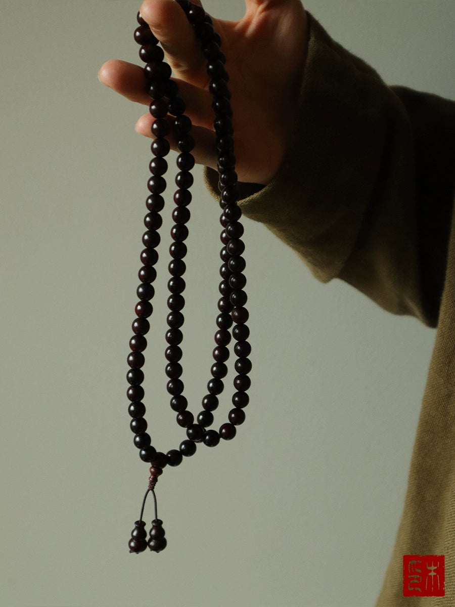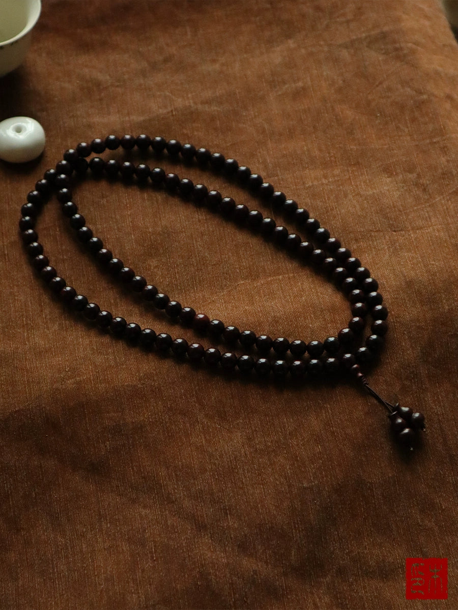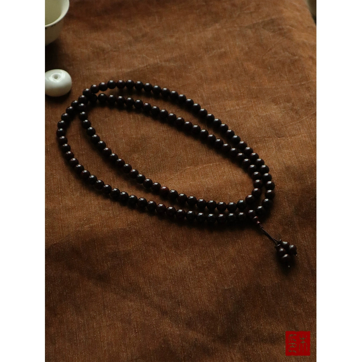 • "Purple Qi Donglai" lobular red sandalwood 108 plain string bracelet Buddha beads Happy wood fire 6mm Wenwan jewelry