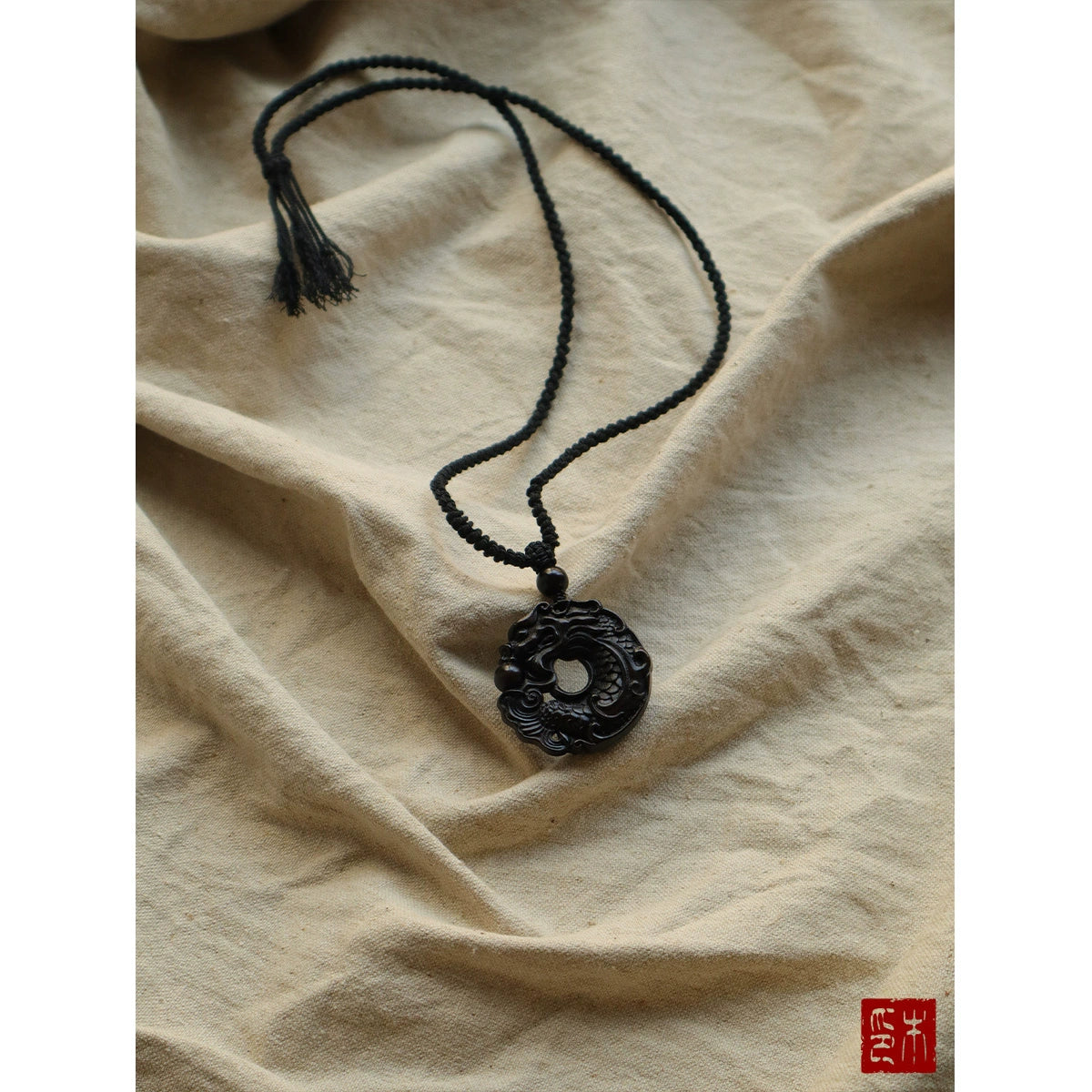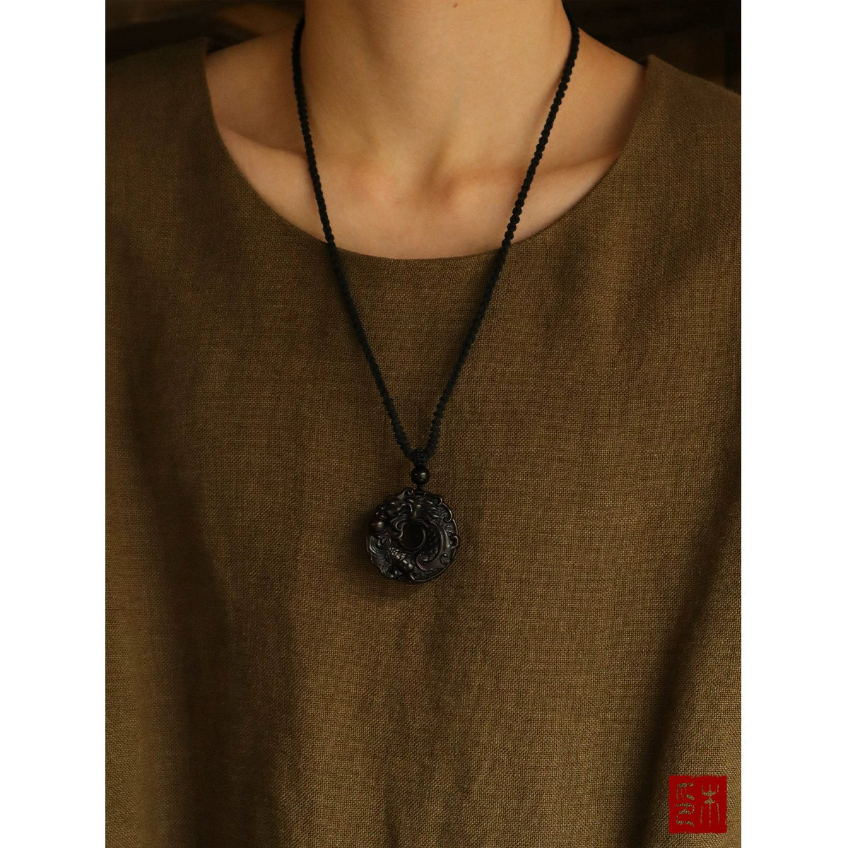 • "Scale Carp" Sandalwood Carving Arowana Safety Buckle Pendant Handmade Braided Rope Chinese Zen Pendant Necklace