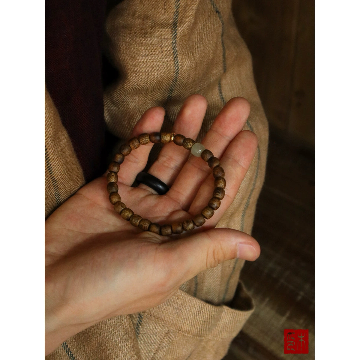 "Song Yu" natural old material Qinan agarwood old bracelet high ice Hetian jade men's and women's bracelet gift