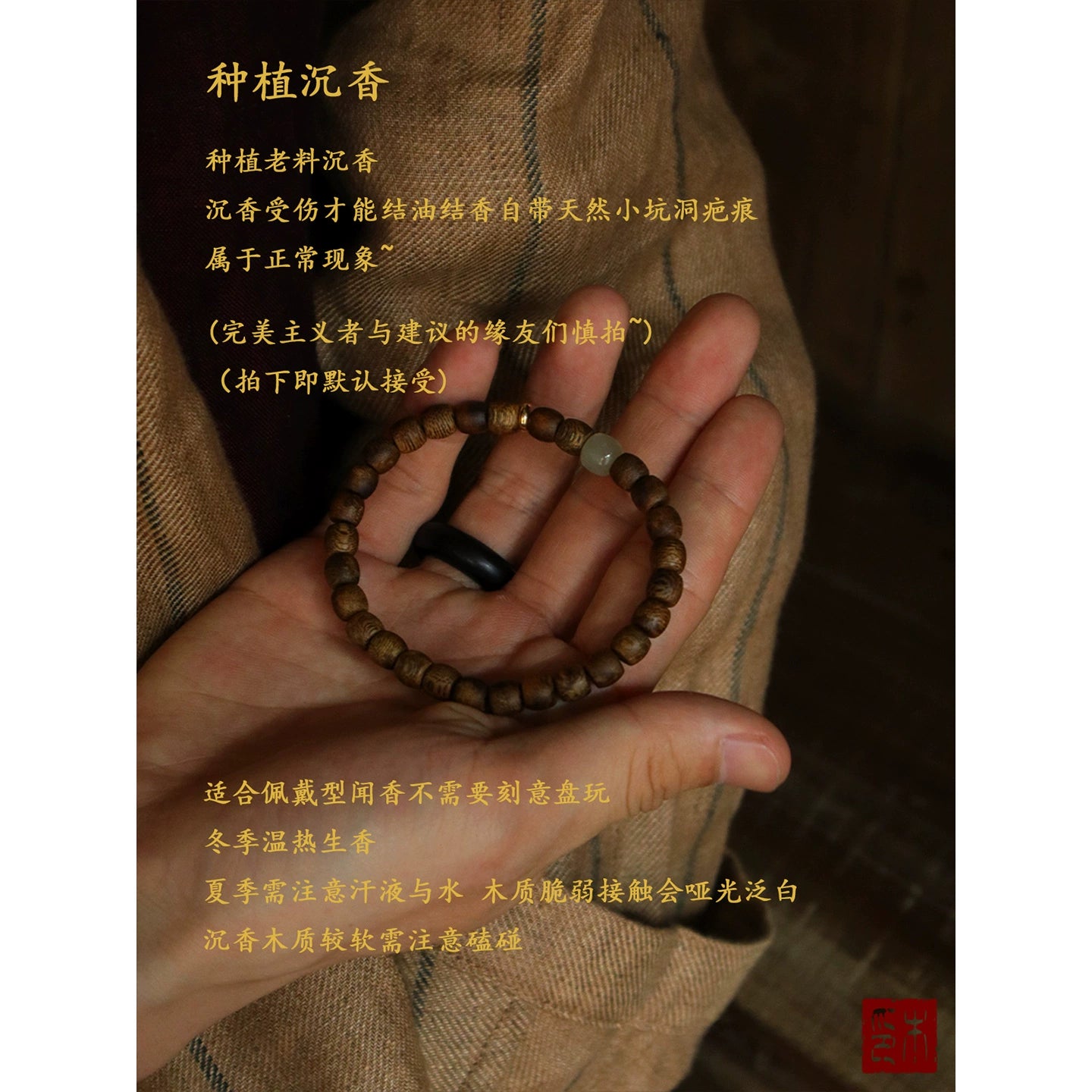 • "Song Yu" natural old material Qinan agarwood old bracelet high ice Hetian jade men's and women's bracelet gift