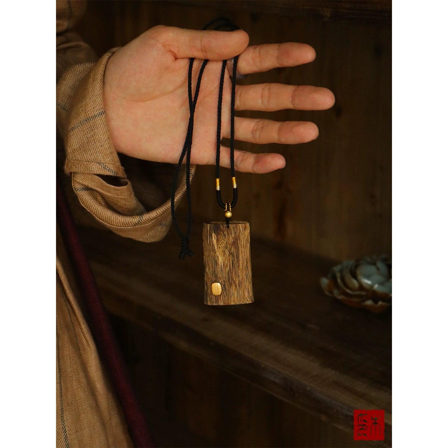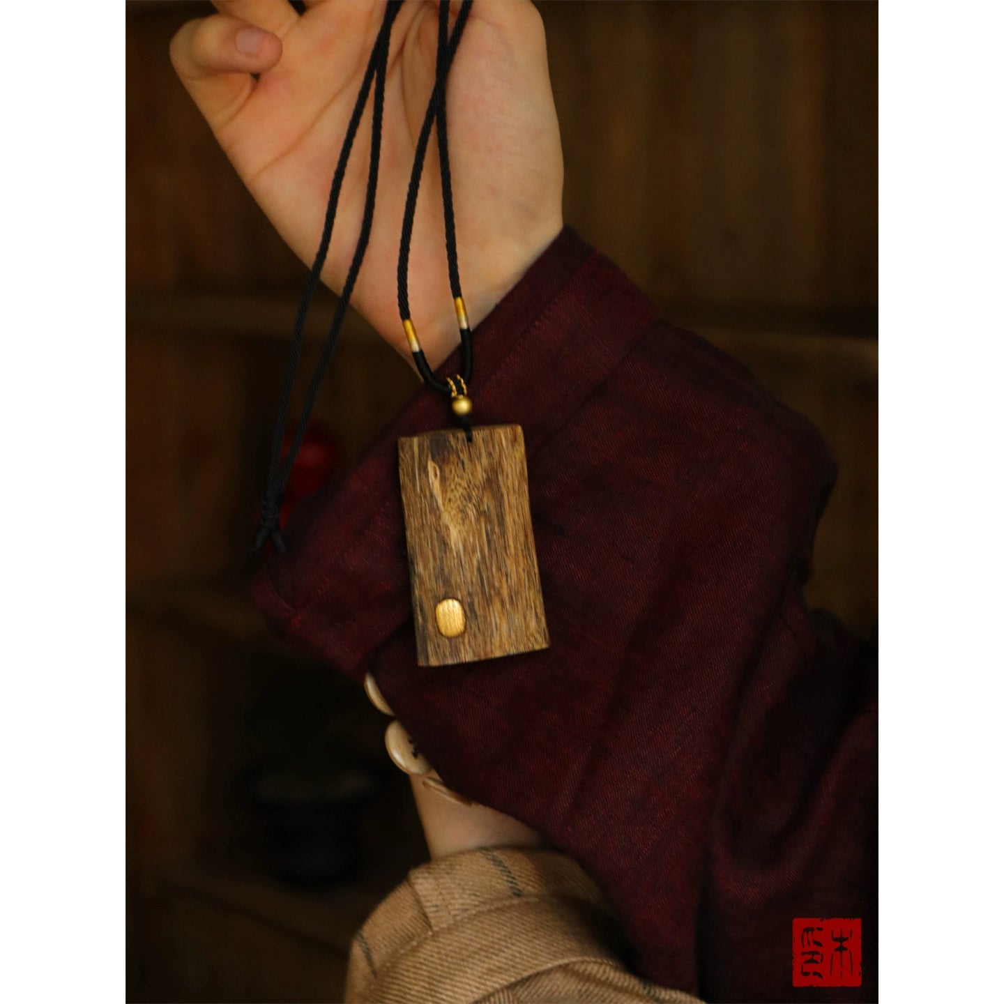 • "Stay safe" Chinan agarwood no matter brand pendant 24k gold necklace natural old material Wenwan men and women