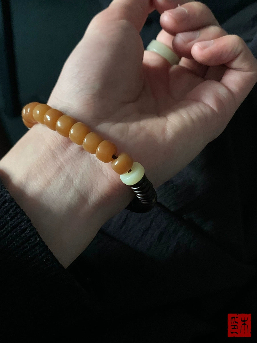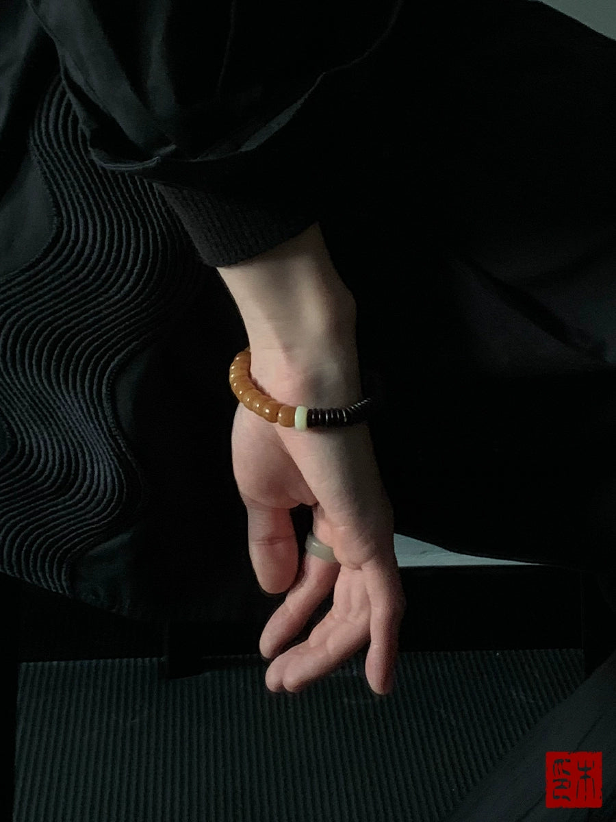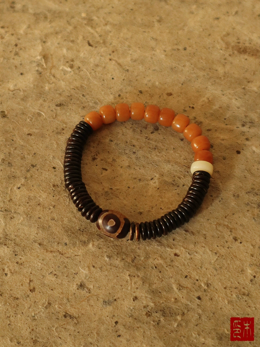 • "Yangji" Tibetan agate three-eye dzi beads bracelet Wenwan jewelry