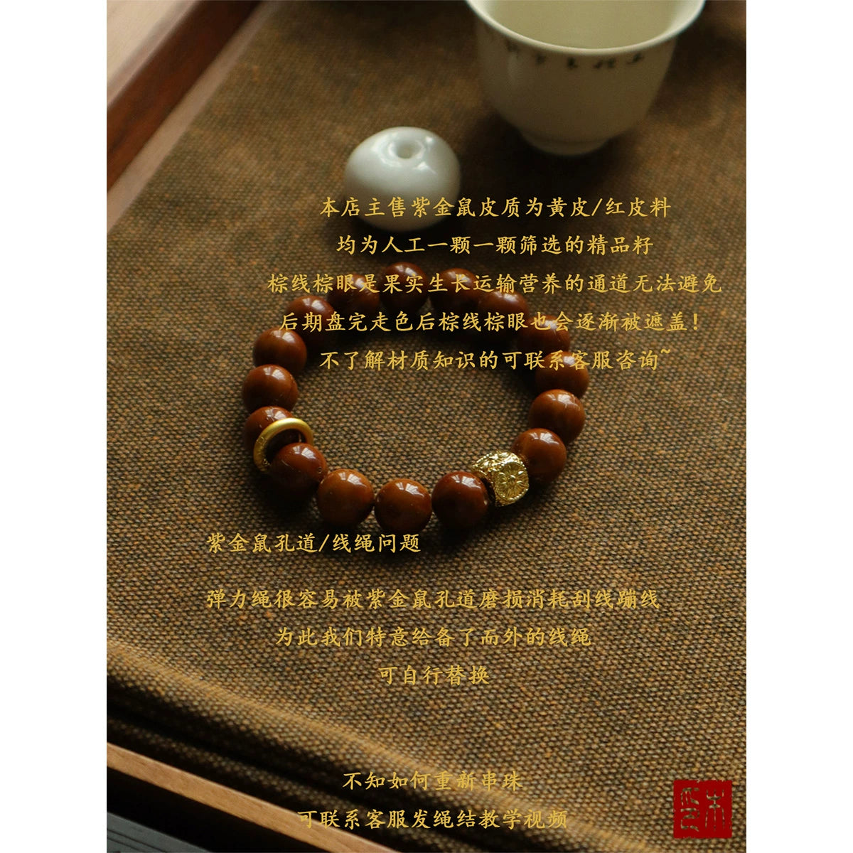 • "Zijin" Natural Purple Gold Rat Ancient Gold Bracelet Plain String Bodhi Seed Chinese Cultural and Play Men's and Women's Jewelry