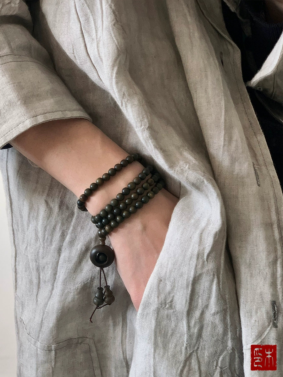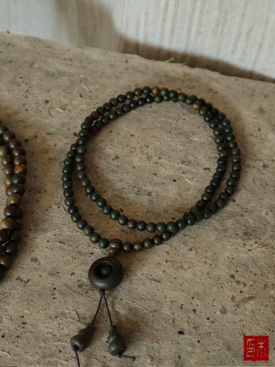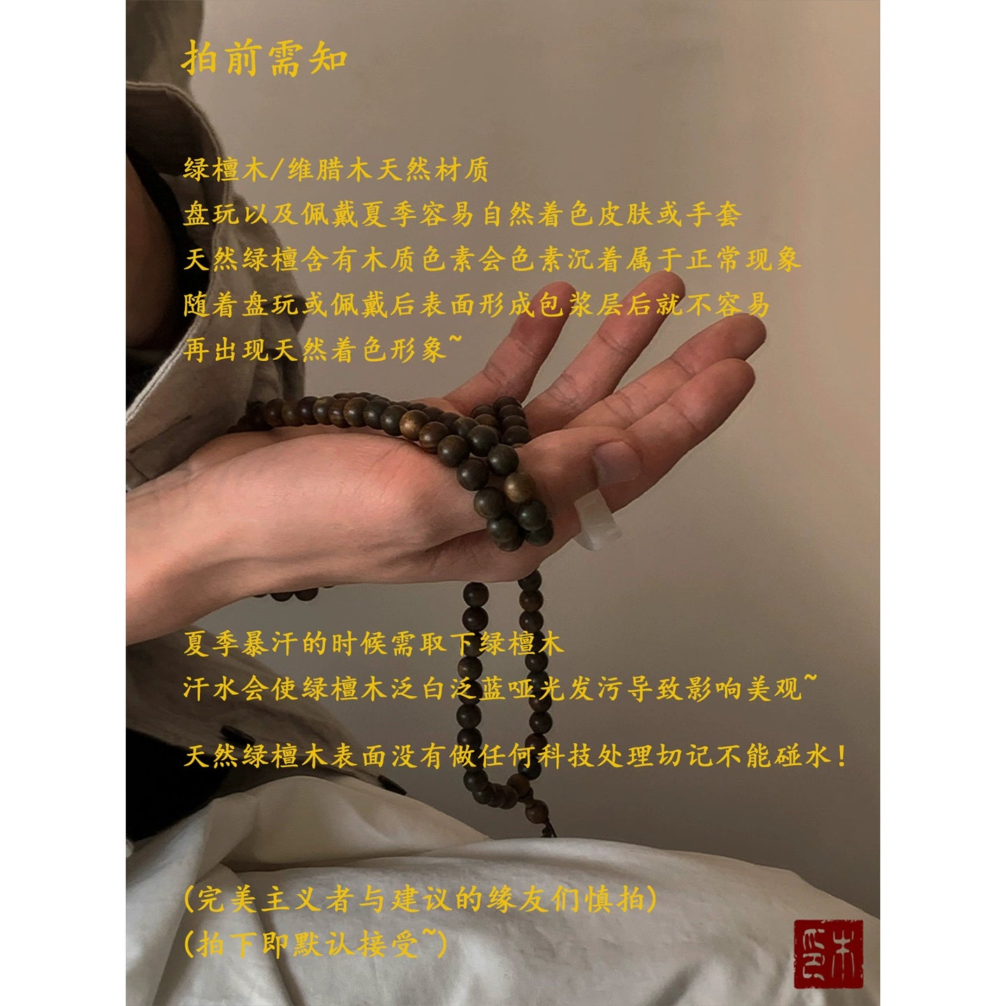 • "Yunsheng" Natural Old Material Green Sandalwood 108 Bracelets Happy Wood Fire Sandalwood Bracelet Buddha Beads Handheld 6mm