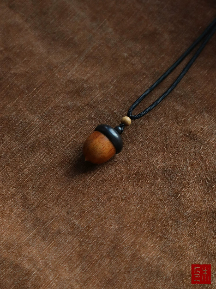 "loose rain light" solid wood pine cone pendant Laoshan sandalwood with beads built-in cinnabar acorn sweater chain gift