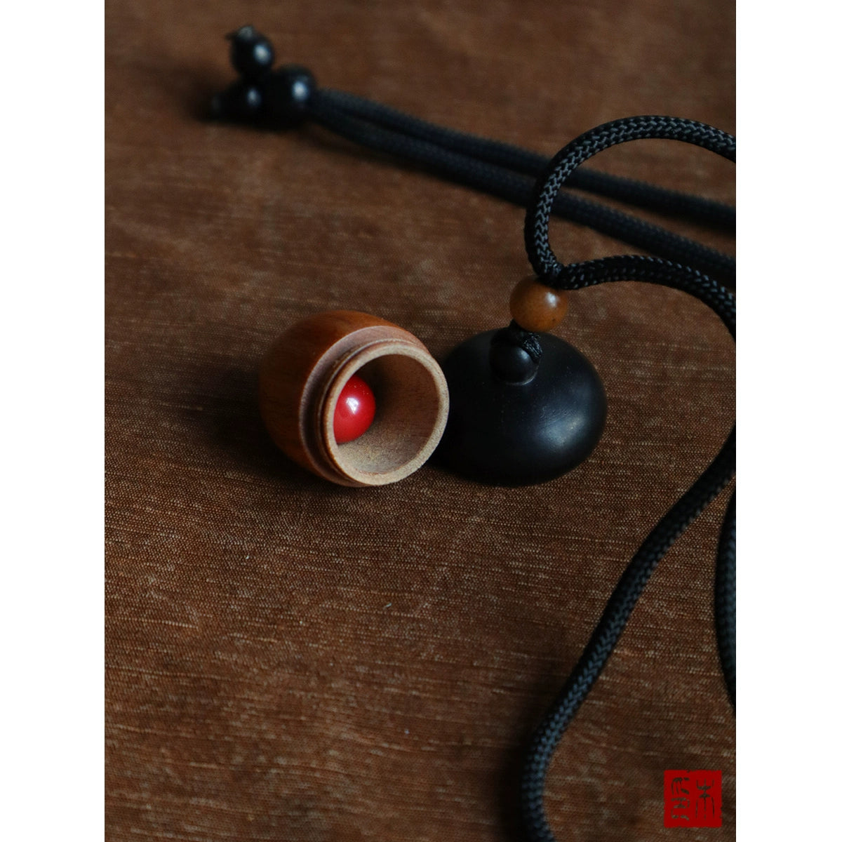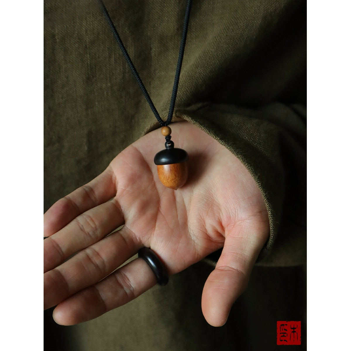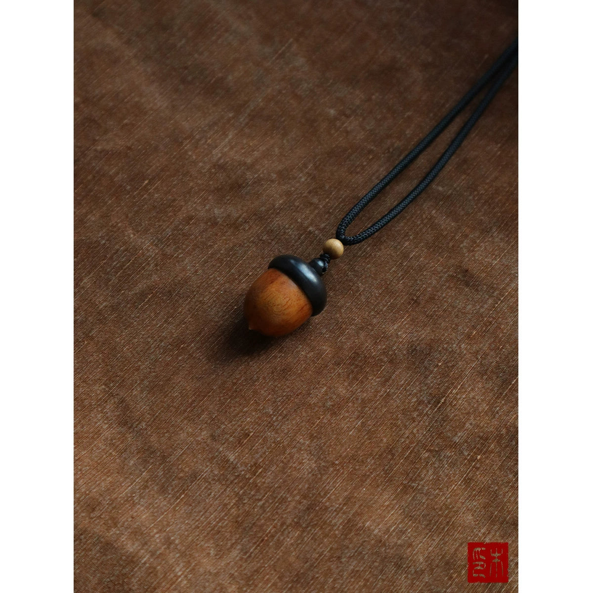 • "loose rain light" solid wood pine cone pendant Laoshan sandalwood with beads built-in cinnabar acorn sweater chain gift