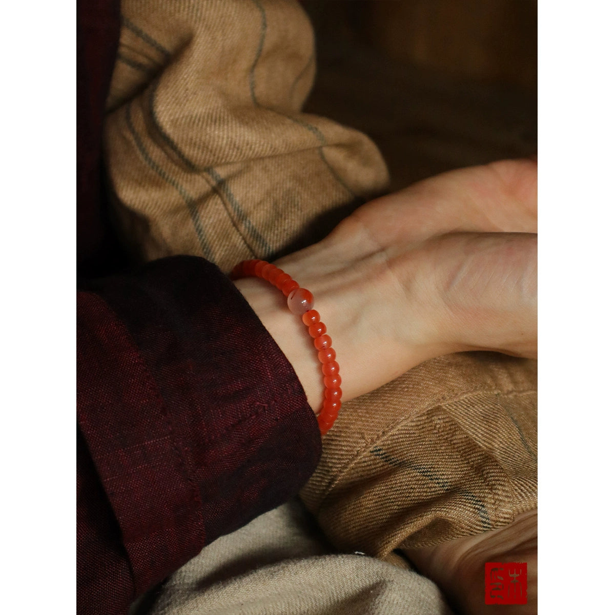 • Mu Mian "Begonia" Welfare Nanhong Agate Ice Piao Cherry Red Apple Bead Bracelet Wenwan Jewelry Gift