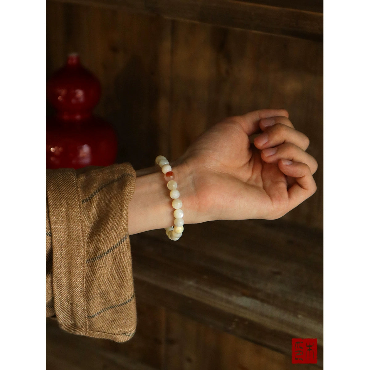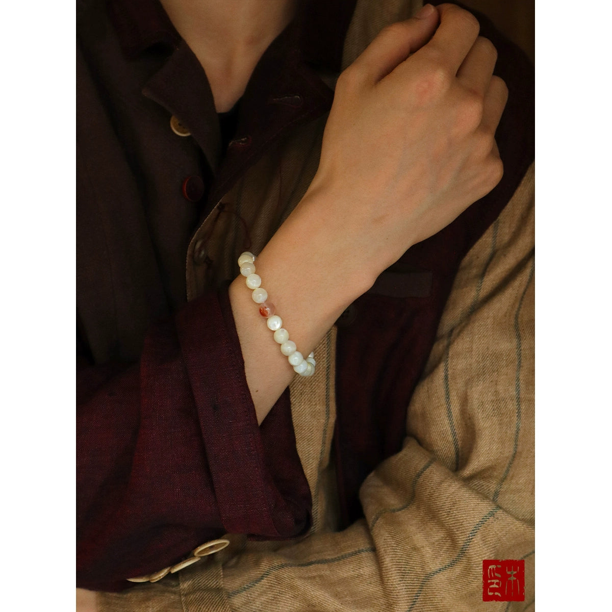 • Mu Mian "Dianhua" Original Natural Mother-of-Pearl Round Bead Bracelet, Piaohua Nanhong Top Bead Bracelet, Girls' Gift