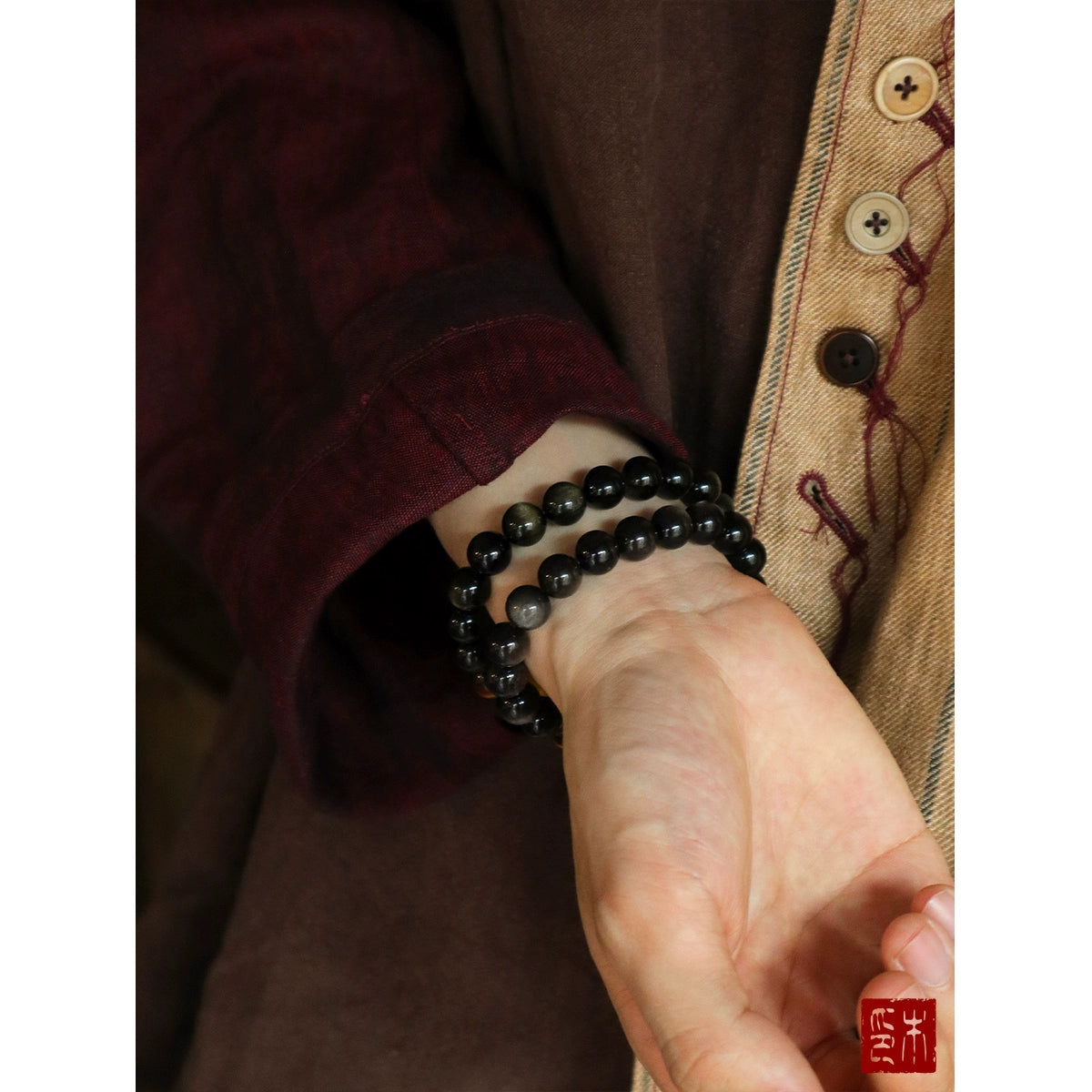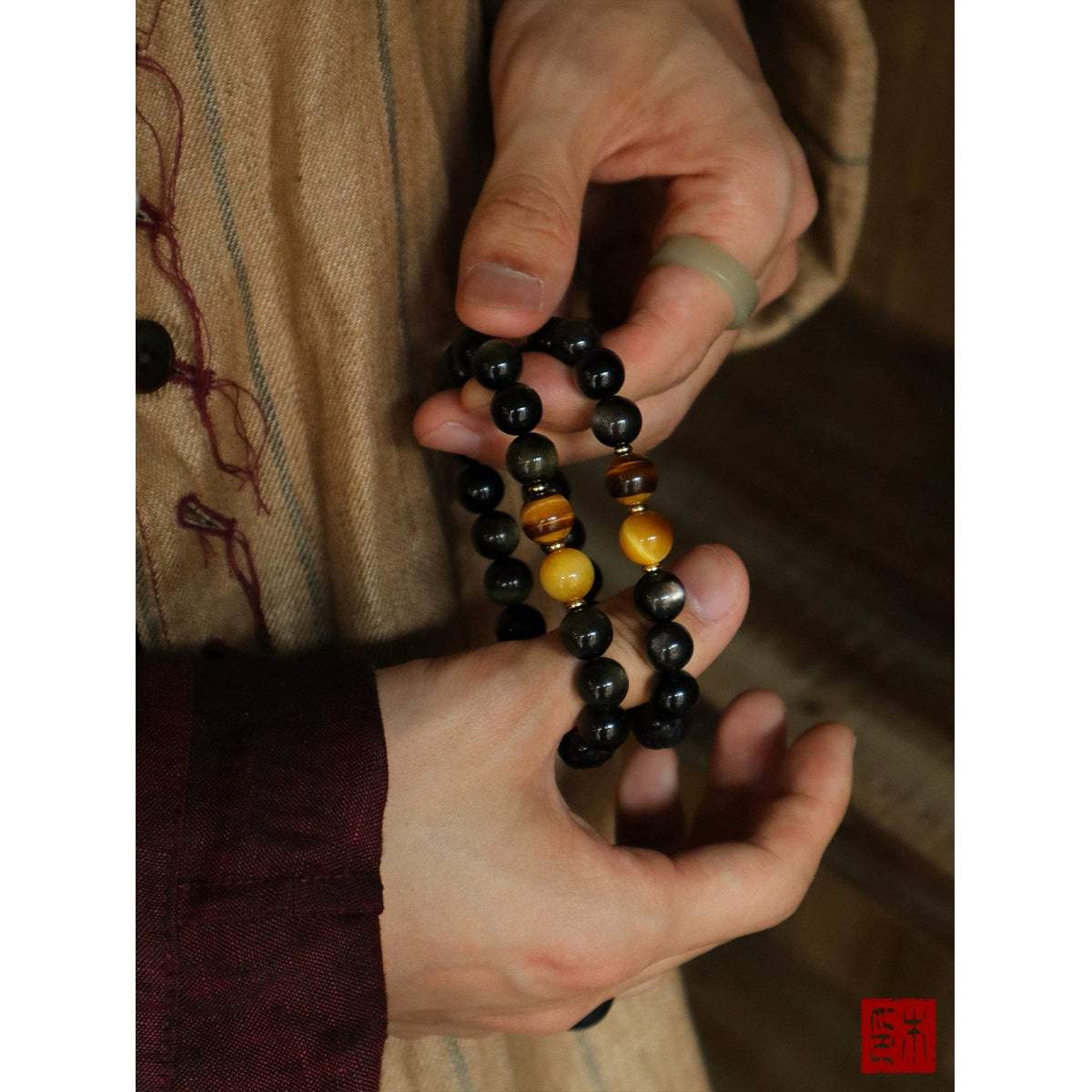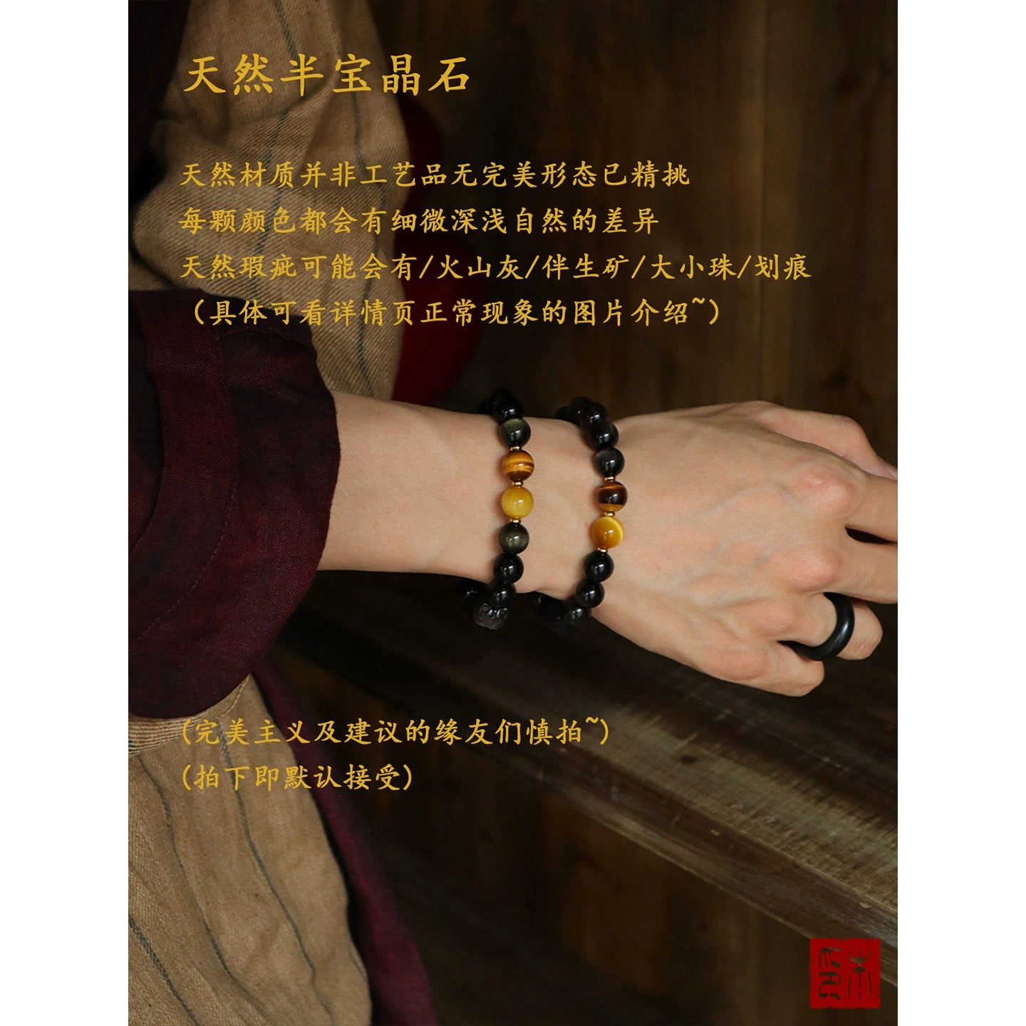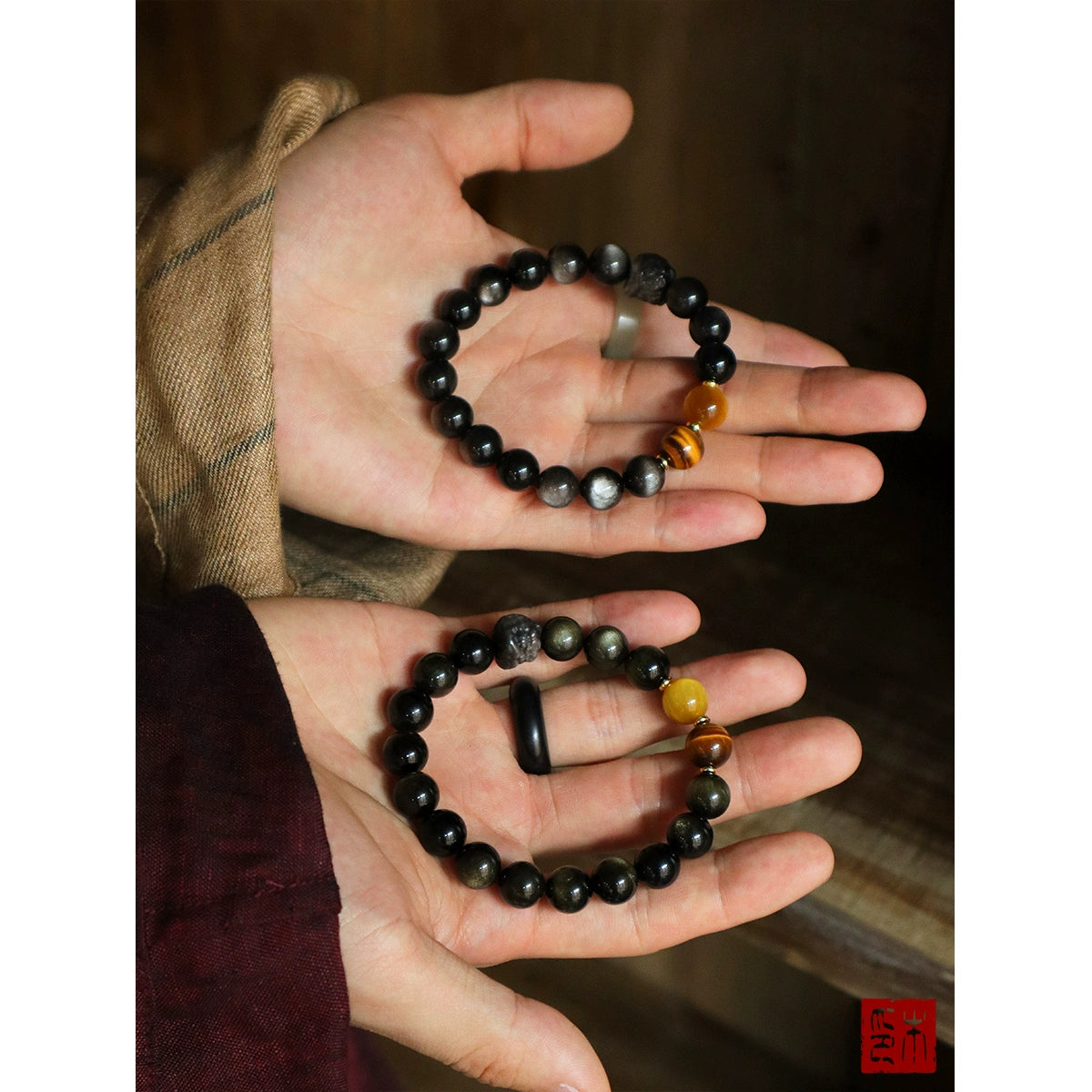 • Mu Mian "Evening Dawn" Obsidian Crystal Bracelet Gold and Silver Obsidian Transfer Bead Bracelet for Men and Women Couples Gift