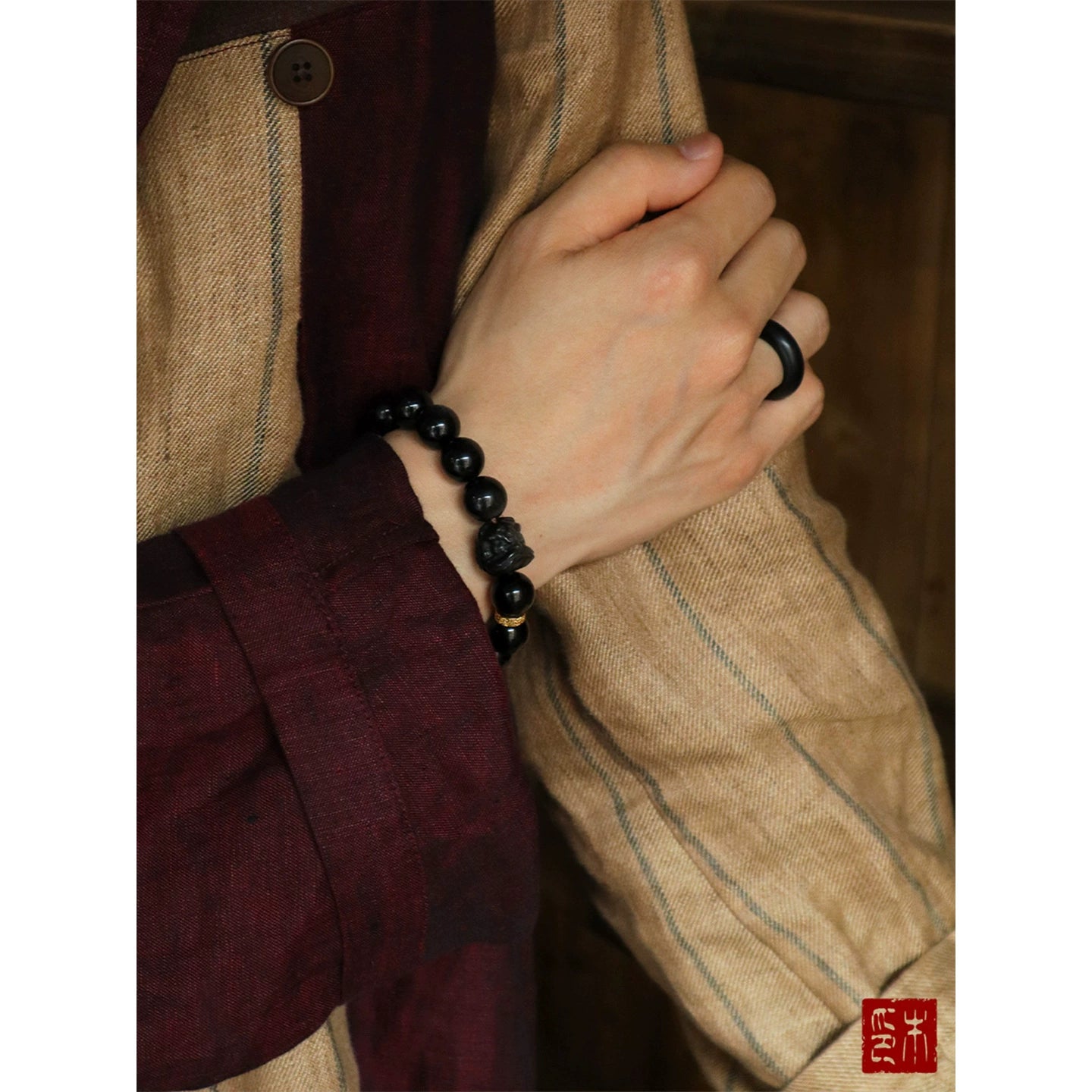 Mu Mian "Ginseng" Natural Obsidian Crystal Bracelet Gold and Silver Obsidian Transfer Bead Bracelet Boys Couple Gift