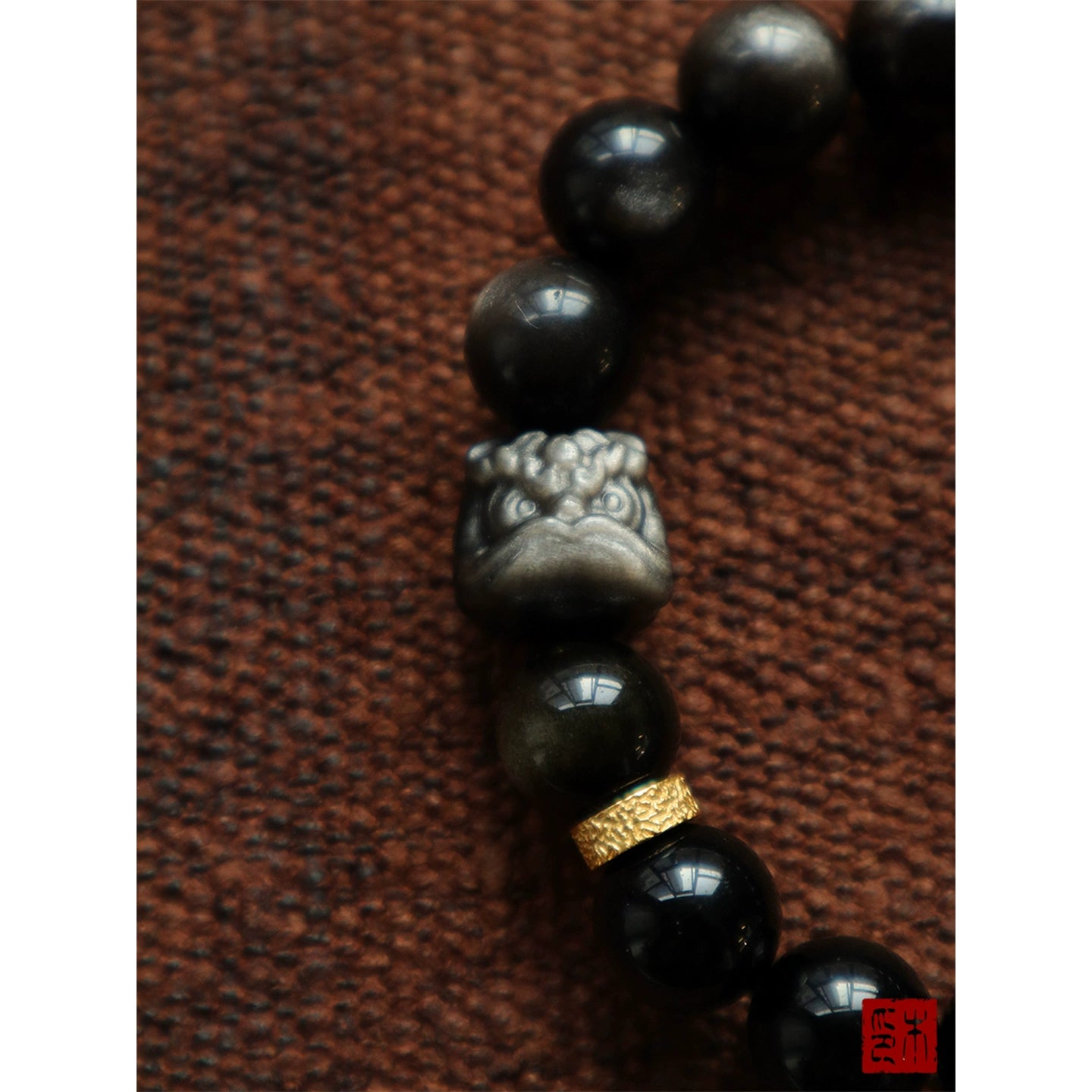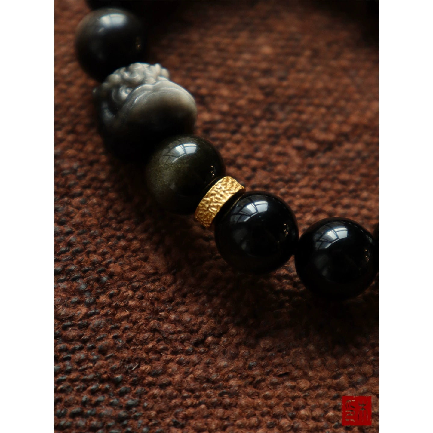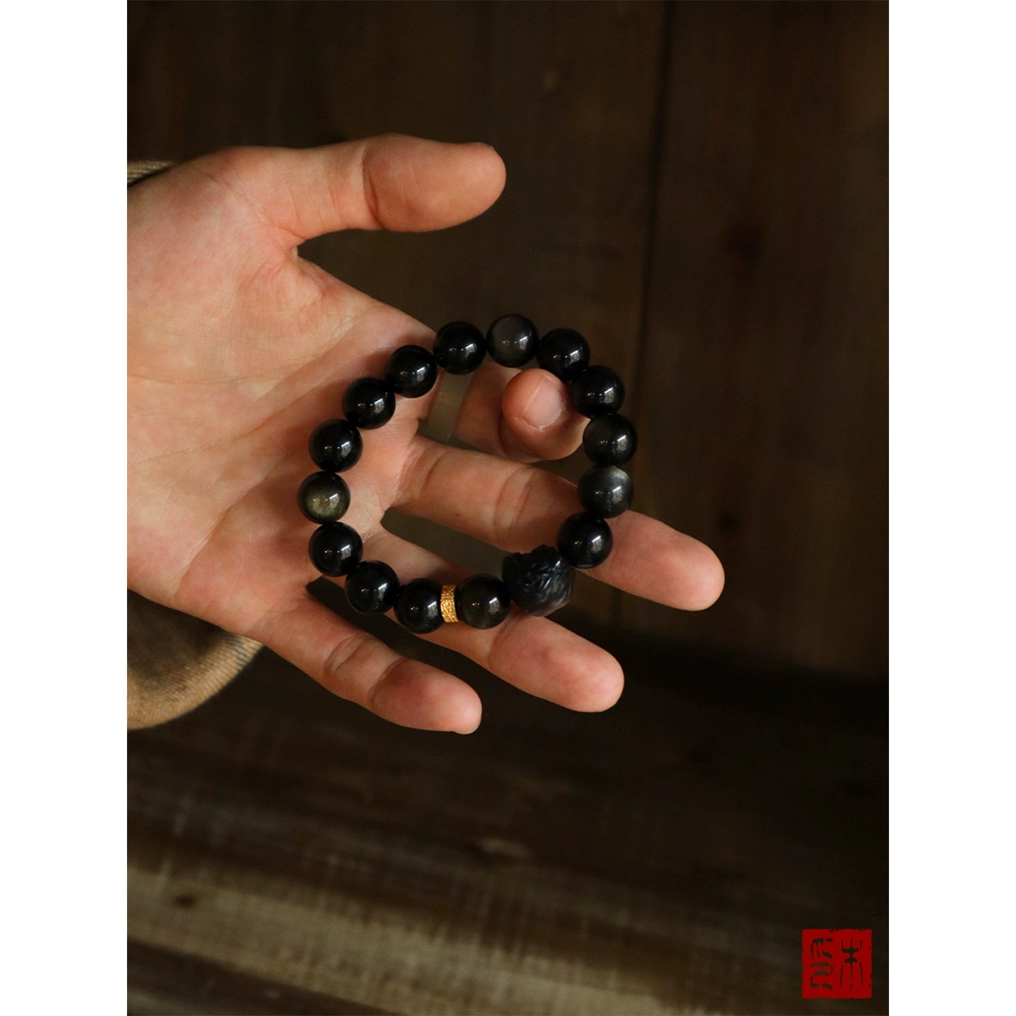 • Mu Mian "Ginseng" Natural Obsidian Crystal Bracelet Gold and Silver Obsidian Transfer Bead Bracelet Boys Couple Gift