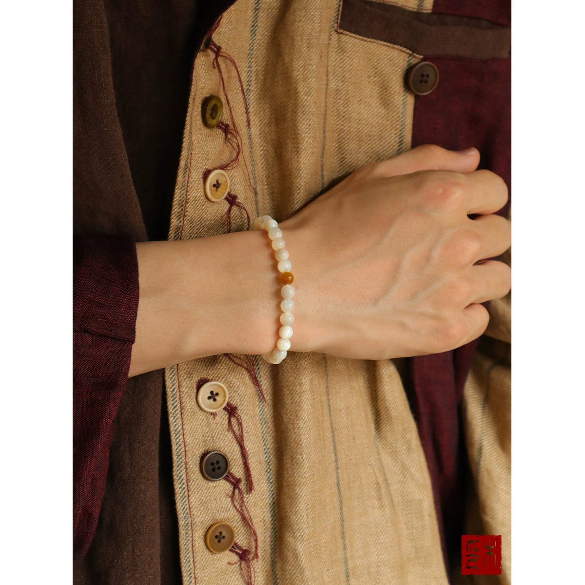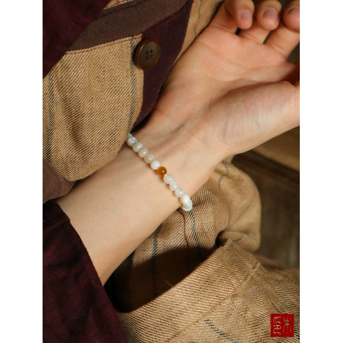 • Mu Mian "Jade Dot" Original Natural Mother-of-Pearl Round Bead Bracelet Golden Tiger Eye Transfer Bead Bracelet Girls Gift