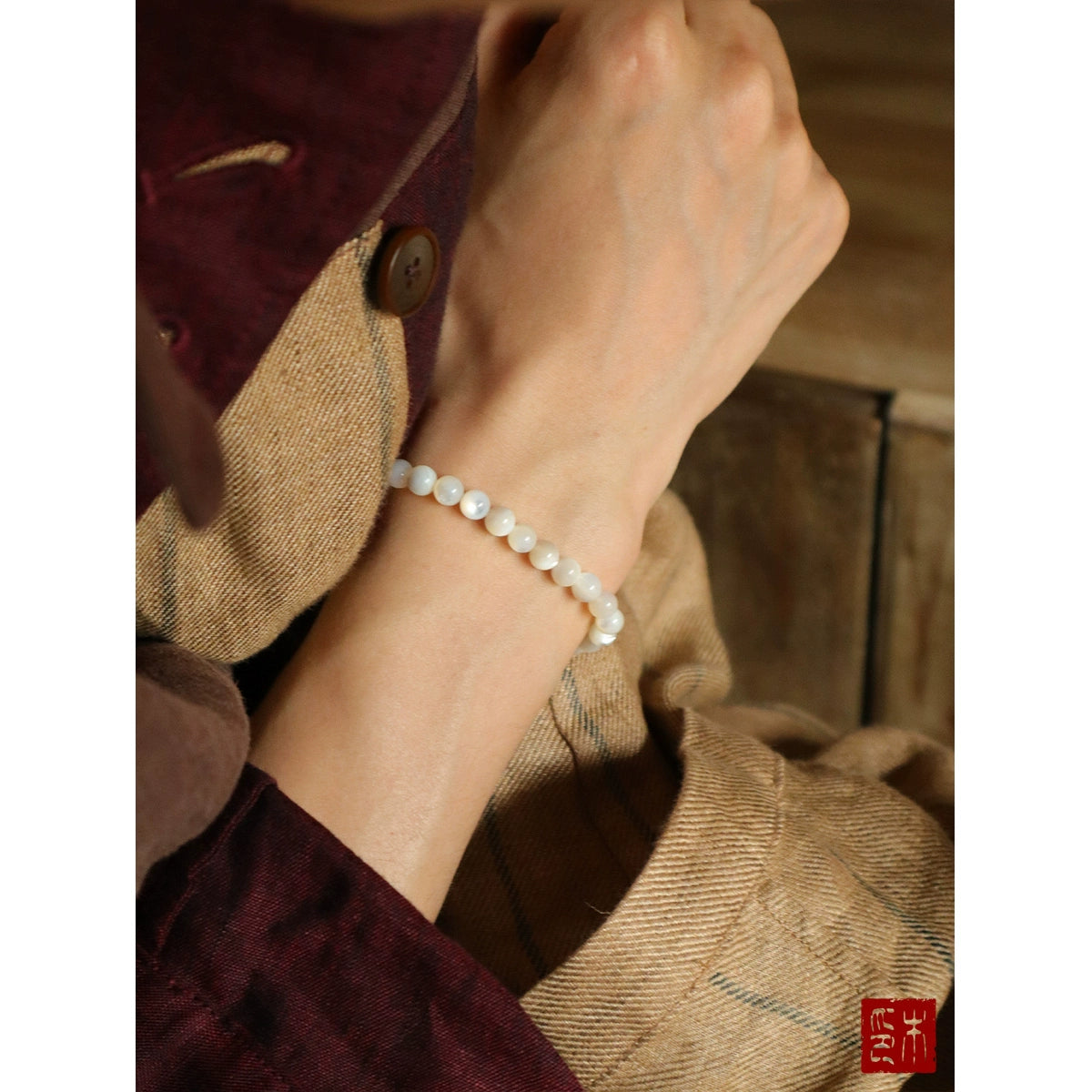 Mu Mian "Jade Dot" Original Natural Mother-of-Pearl Round Bead Bracelet Golden Tiger Eye Transfer Bead Bracelet Girls Gift