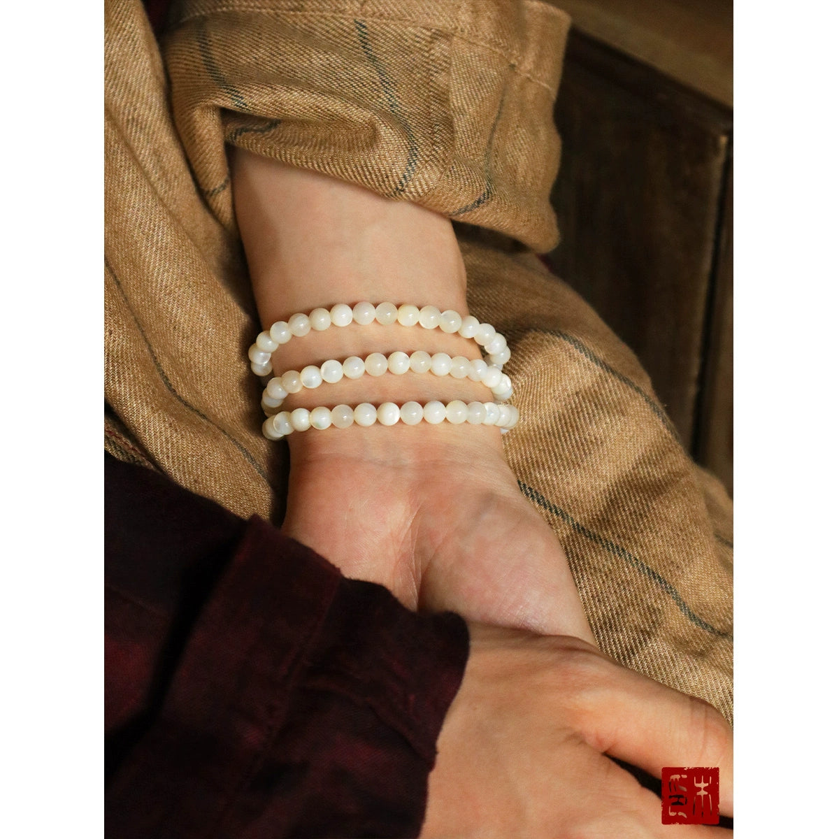 Mu Mian "Plain Embryo" Original Natural Fritillary Pearl Multi-circle Bracelet Nanhong Top Bead Clavicle Necklace Girls Gift