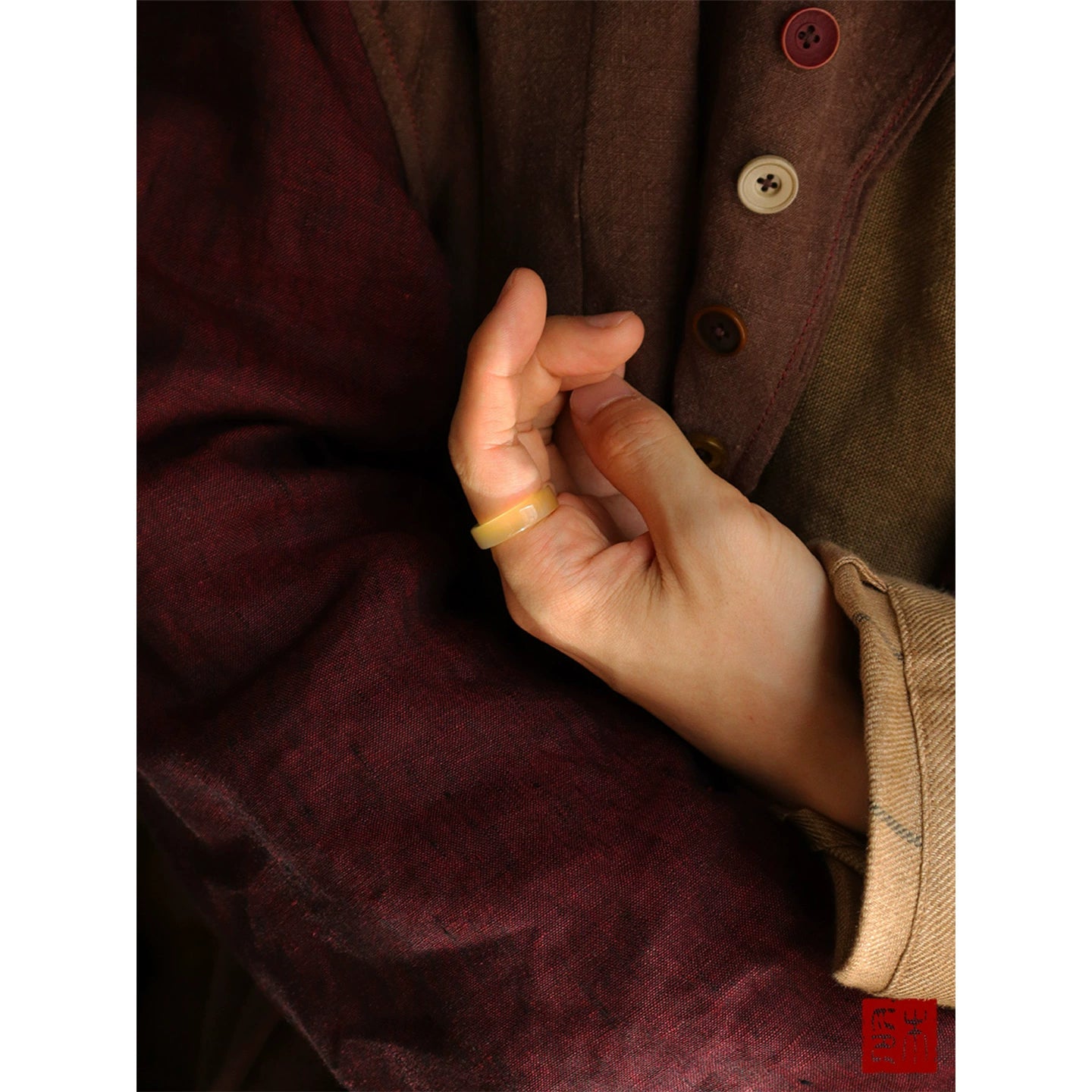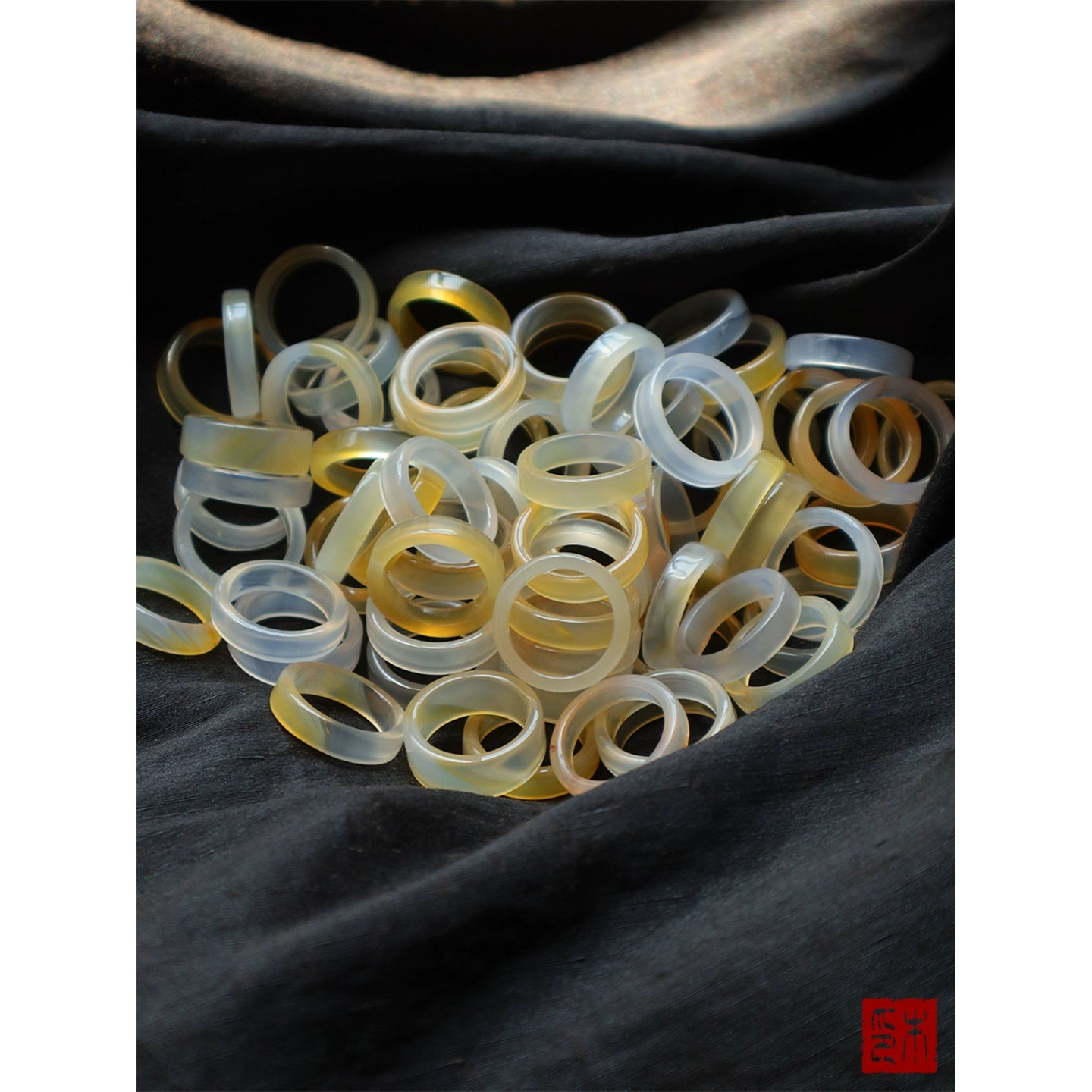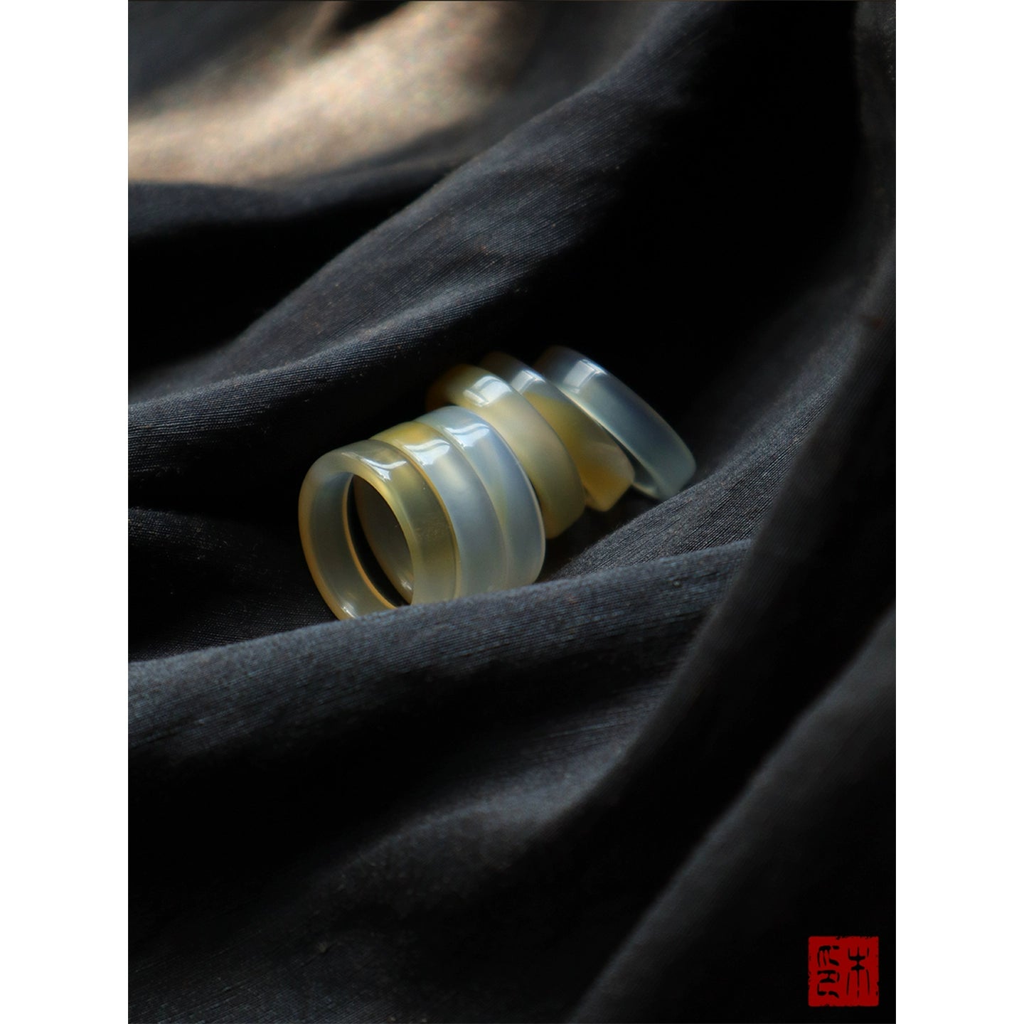 Mu Mian "Valley Gallery" welfare model, natural icy sugar-colored agate straight-cut ring, chalcedony couple ring jewelry