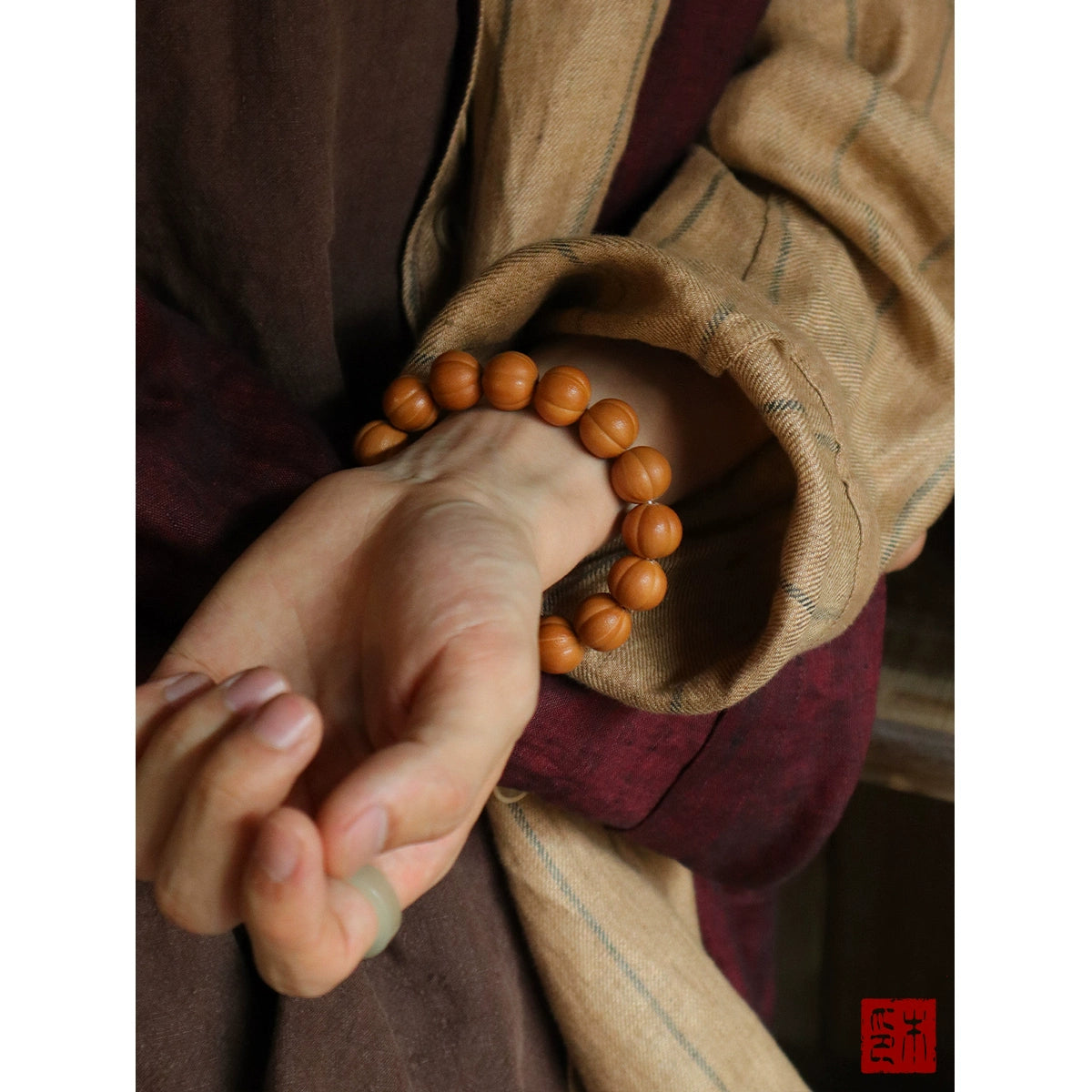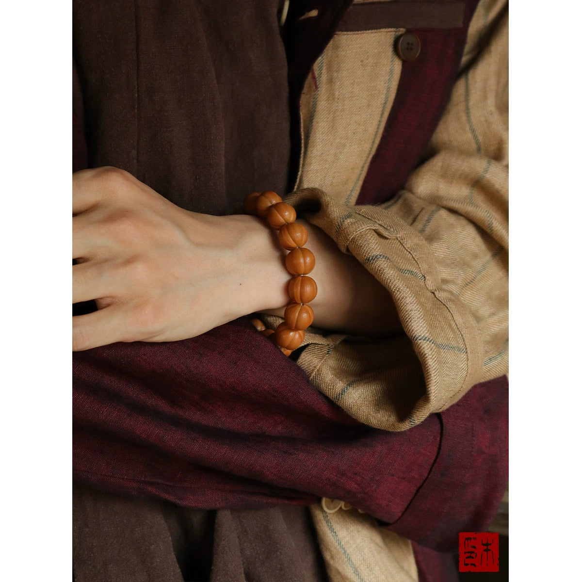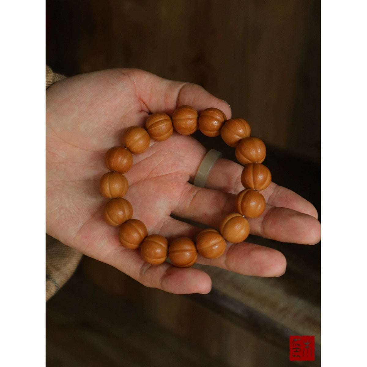• "Pumpkin" Natural Non-foaming Medicine Walnut Monkey Head Seiko Carved Melon Petal Bracelet Wenwan Men's and Women's Jewelry